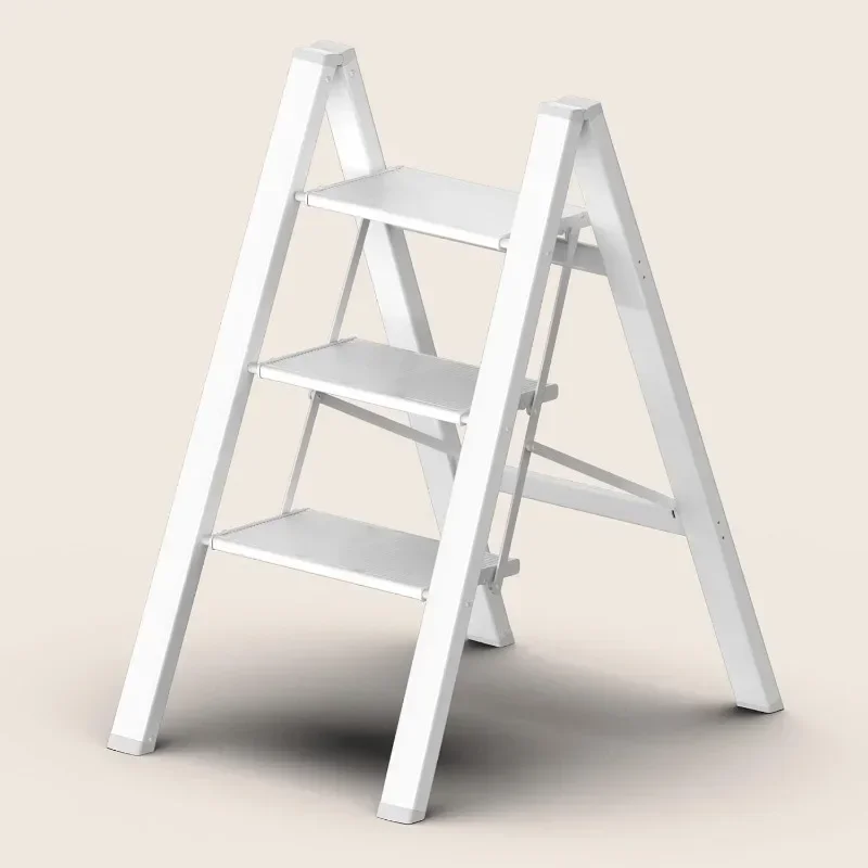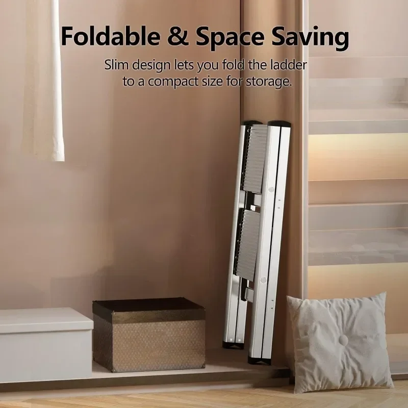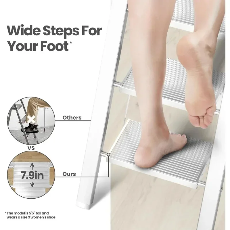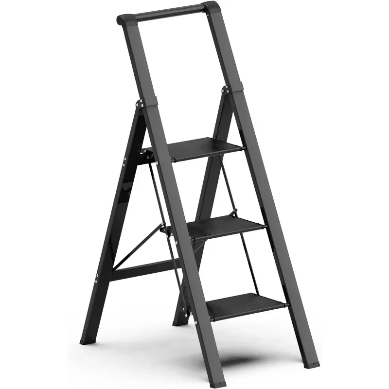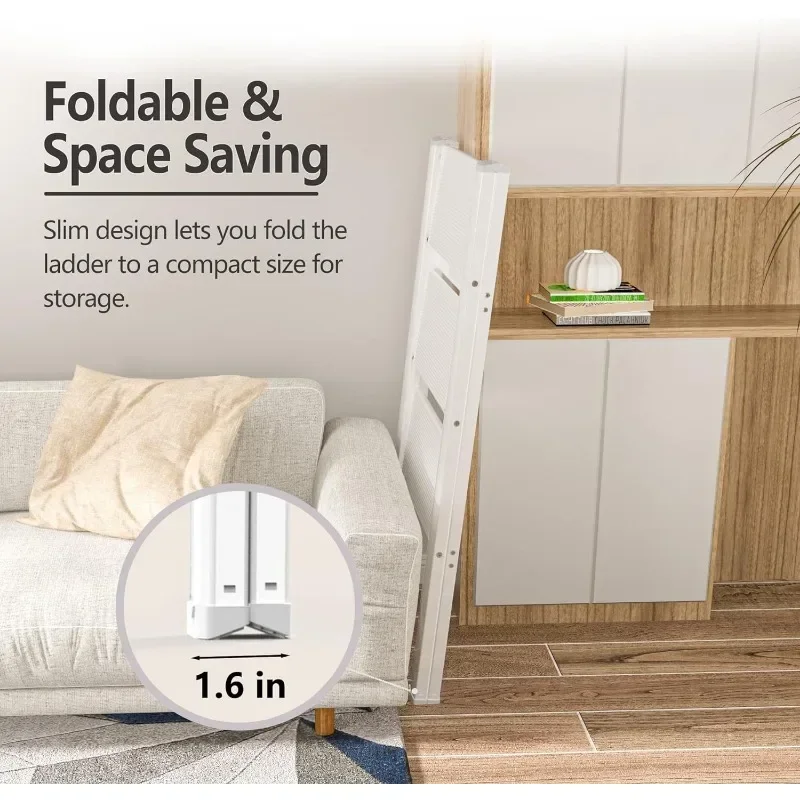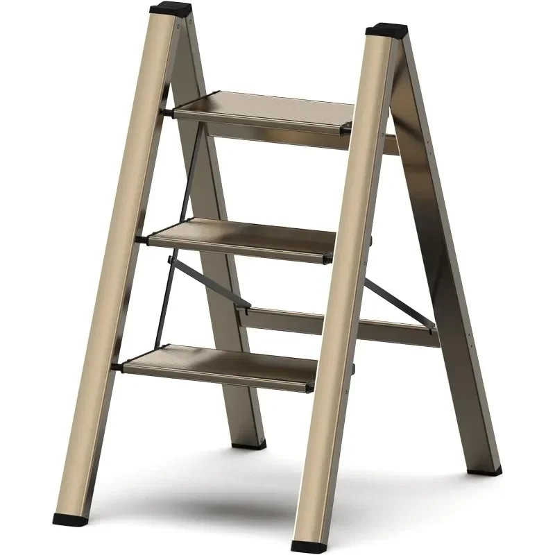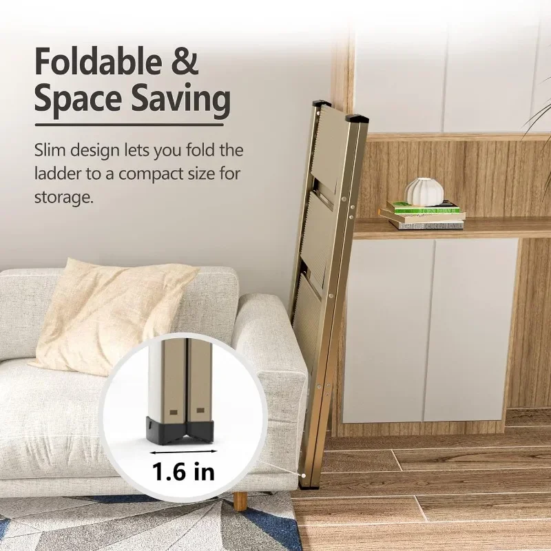 3 Step Ladder Anti-Slip Foldable Step Stool Aluminum Lightweight with Wide Pedal for Home and Kitchen Space Saving