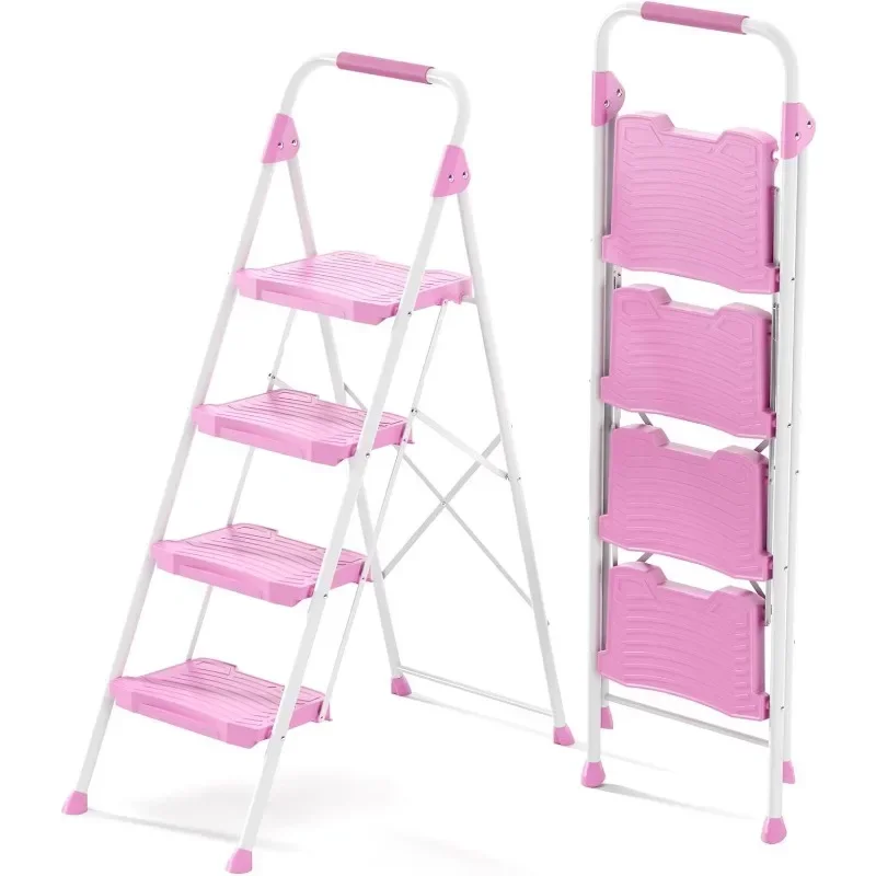 Folding Ladder 2/3/4 Step Carbon Steel Foldable House Protable Ladder Stable Step Stool Storage Shelf For Home Multifunctional