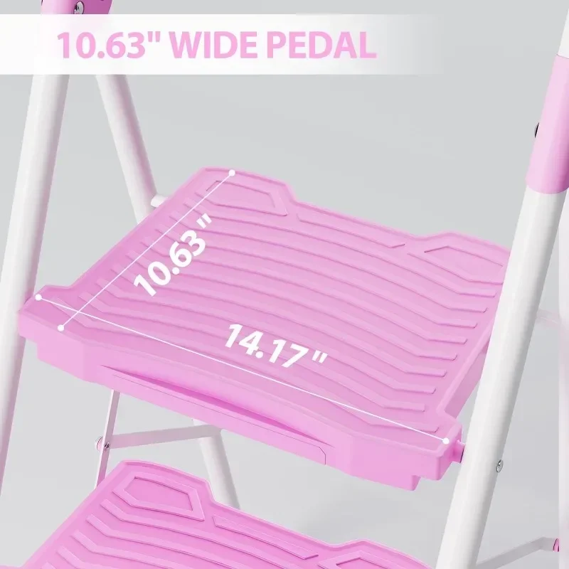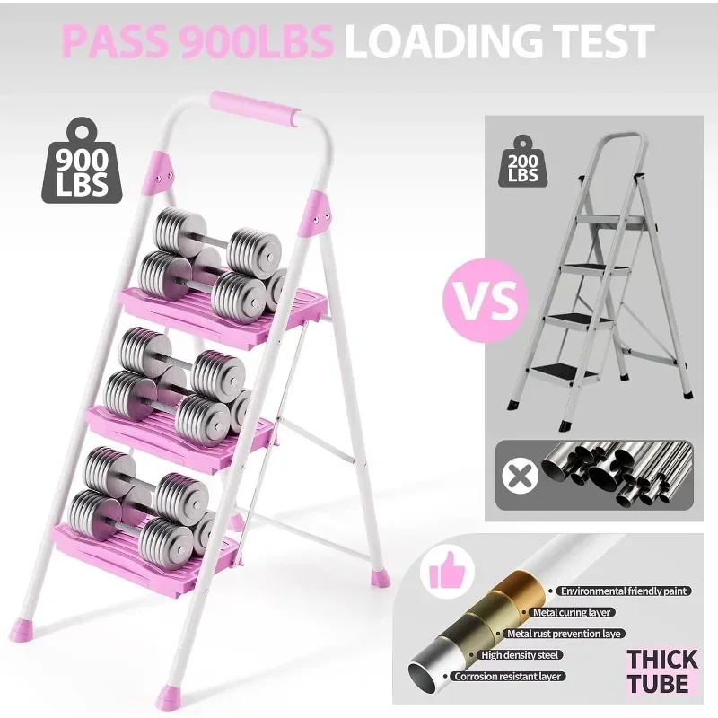 3 Step Ladder, Foldable Sturdy Step Stool with Handrail, Anti-Slip Wide Pedals for Home, Garage, Garden Pass 900LBS Testing
