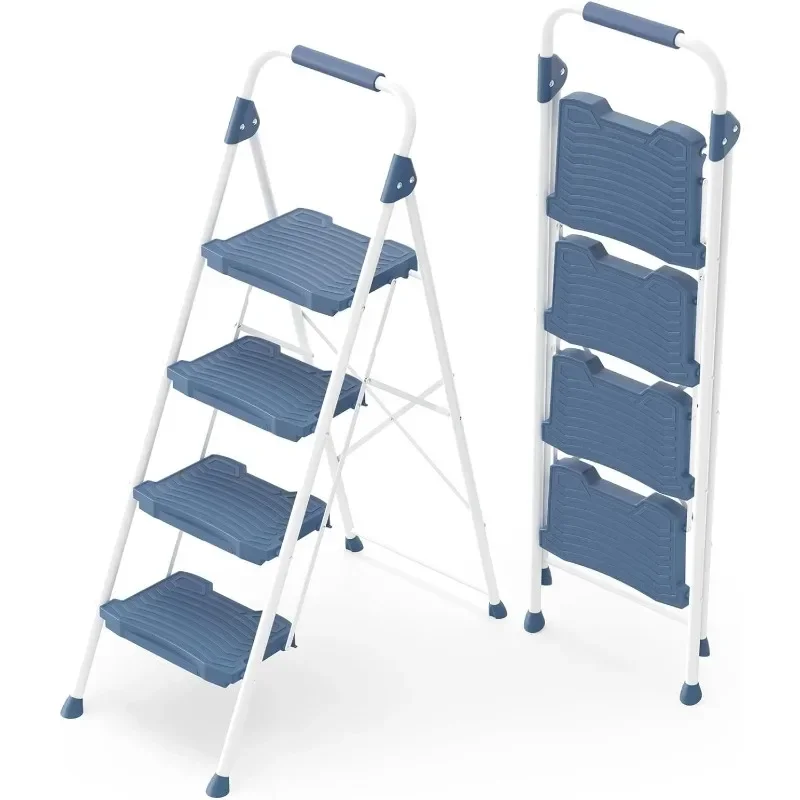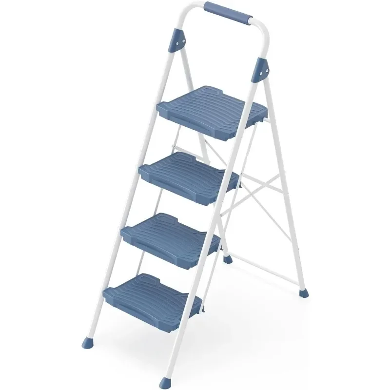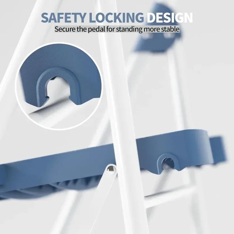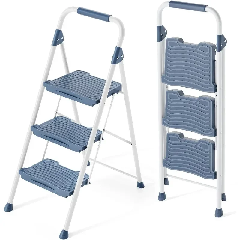 - Sturdy & Multi-purpose: The 3-step Blue ladder is made of high-strength iron, forming a stable triangular structure between the pedal and the fixing bar, and the back cross design enhances safety and stability, perfect for using in kitchen, pantry, bathroom, office, garage,etc.