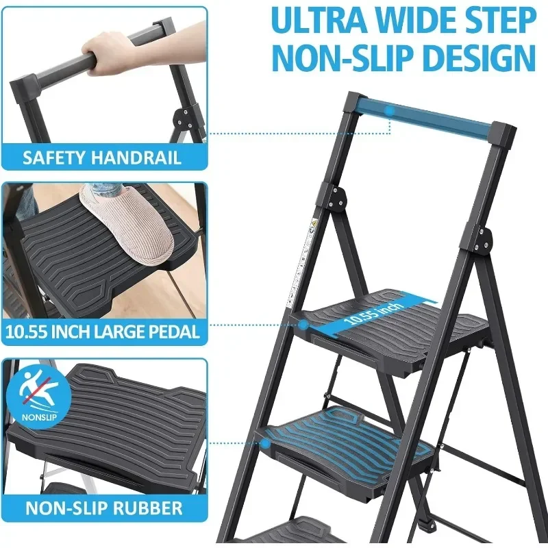 3 Step Folding Ladder Sturdy Portable Stepping Stools 330lbs Capacity Wide Platform Steps Ladder Chair for RV Attic Daily Home