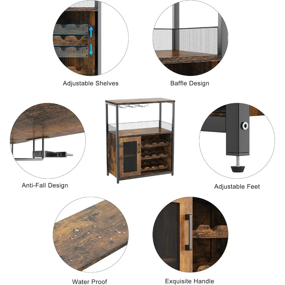 - 【Multifunctional Functions】Designed for versatility, our wine cabinet includes detachable wine racks for 12 bottles, a wine glass holder for 9 glasses, and a ventilated cabinet for various wine shapes. This multifunctional piece adds elegance to your home while efficiently storing your wine essentials.