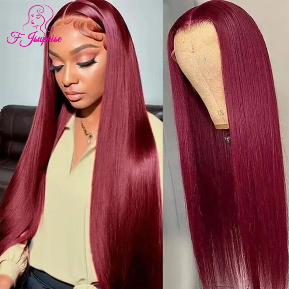30 32 Inch 99j Burgundy HD 13×6 Bone Straight Lace Frontal Wig Human Hair Wine Red Lace Front Wig Colored Human Hair Closure Wig