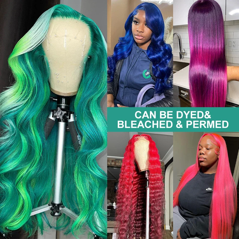 Mint Green 13x4 HD Transparent Lace Front Wig Straight Lace Front Wigs Body Wave 613 Colored Lace Front Human Hair Wigs On Sale