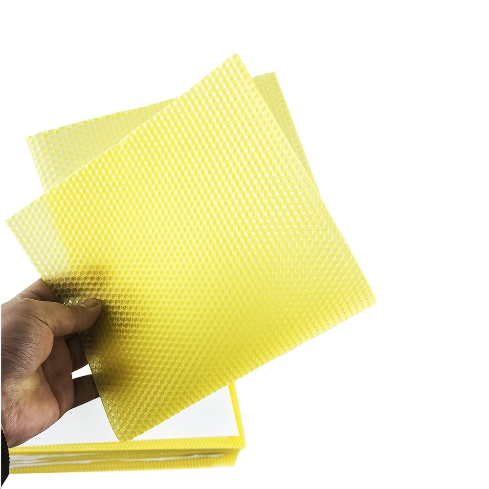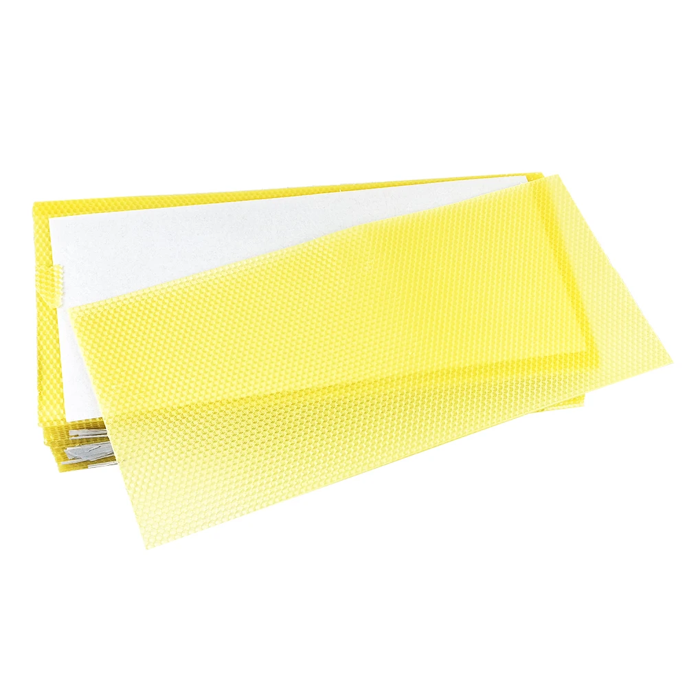 Beeswax honeycomb base paper excellent beekeeping equipment package included: 30 Pcs beeswax sheet. Also Perfect for DIY Projects Like Candle Making, Crafts, Furniture Polish, etc. Beeswax content is high, the color is bright, and the size of the nest is uniform. Pure and natural filtered beeswax sheets have the honeycomb texture easy to use and work with. Honeycomb sheets essential for beekeepers, excellent beekeeping equipment.