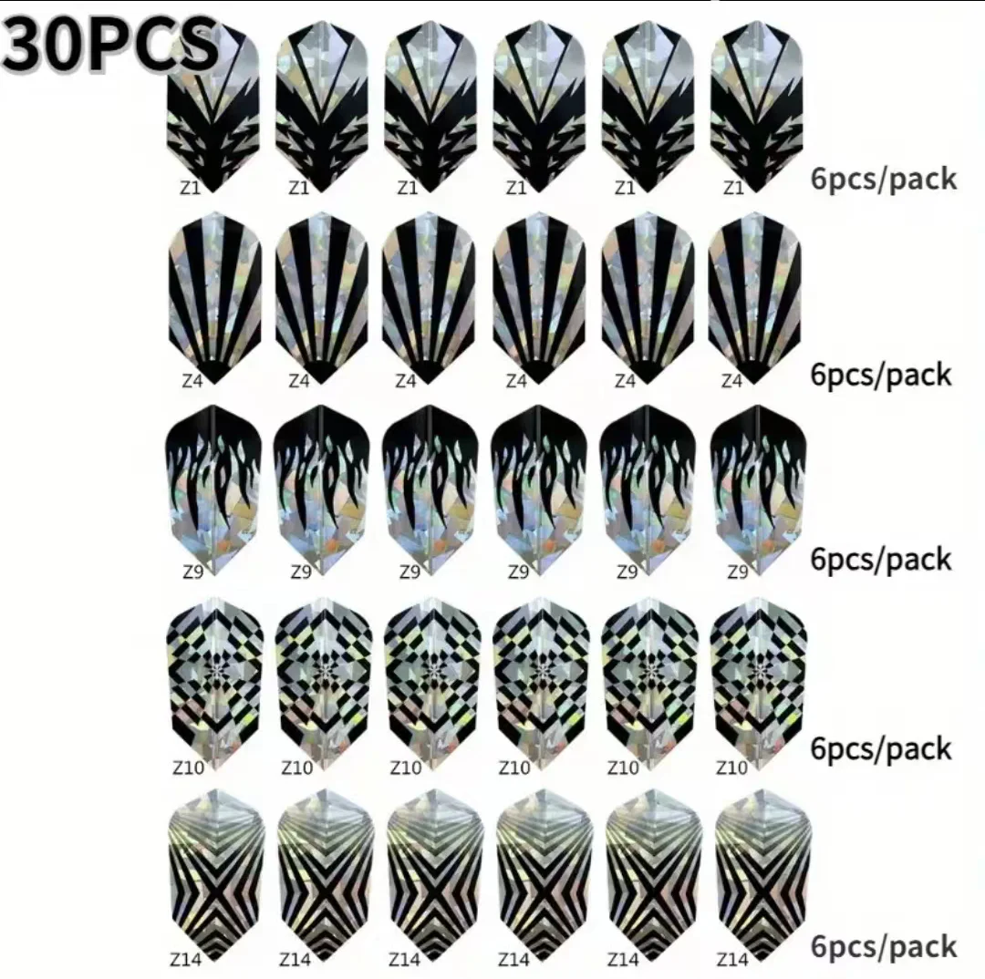 30 Pcs Durable Slim PVC Dart Flights Laser Reflective Designs for Steel Tip and Soft Tip Darts for Hobbyists Tournament Players