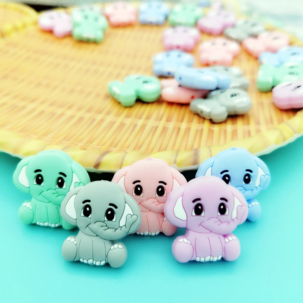 30*29mm 10pc/lot elephant Silicone Beads Baby Teething Pacifier Chains Necklaces Accessories Food Grade Nursing Chewing BPA Free