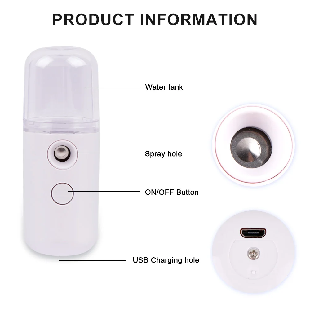 30ML Mini Nano Spray Moisturizing Facial Steamer USB Nebulizer Humidifier Moisturizing Hydrating Portable Face Steamer Skin Care