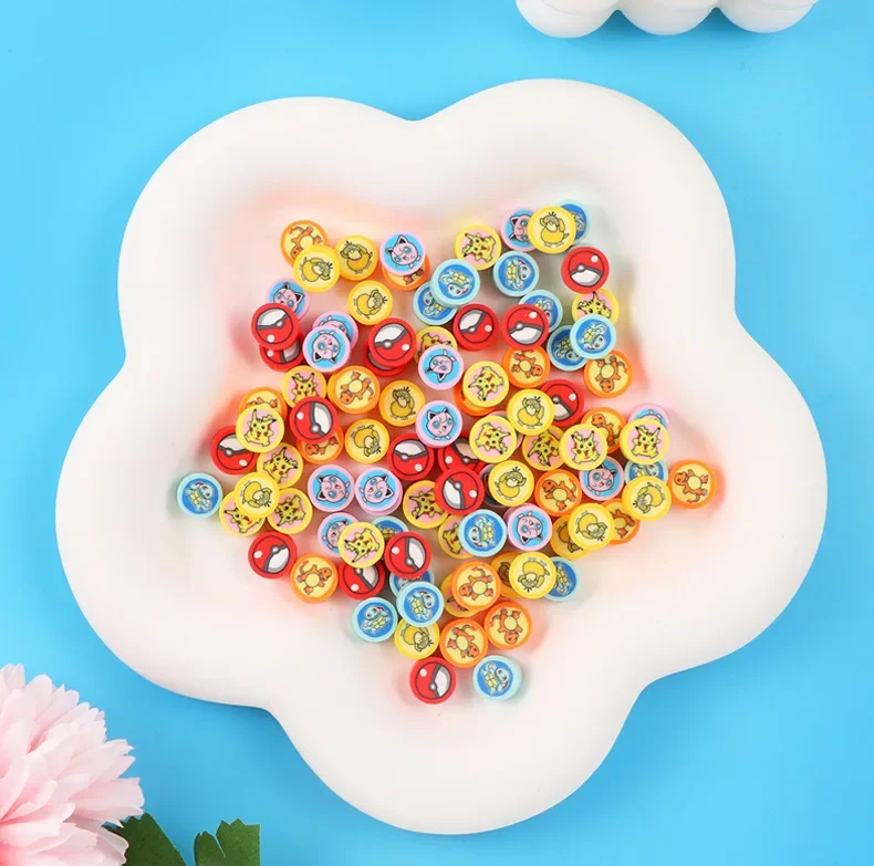 30pcs Bandai Pokémon Beads 9mm Cute Cartoon Anime Clay Beads for Jewelry Making Pikachu Diy Bracelet Necklace Accessories