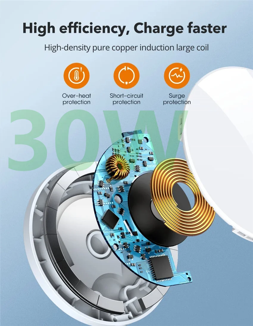 30W Magnetic Wireless Charger Fast Charging Pad Stand for iPhone 15 14 13 12 Pro Max Airpods PD Macsafe Phone Chargers Station