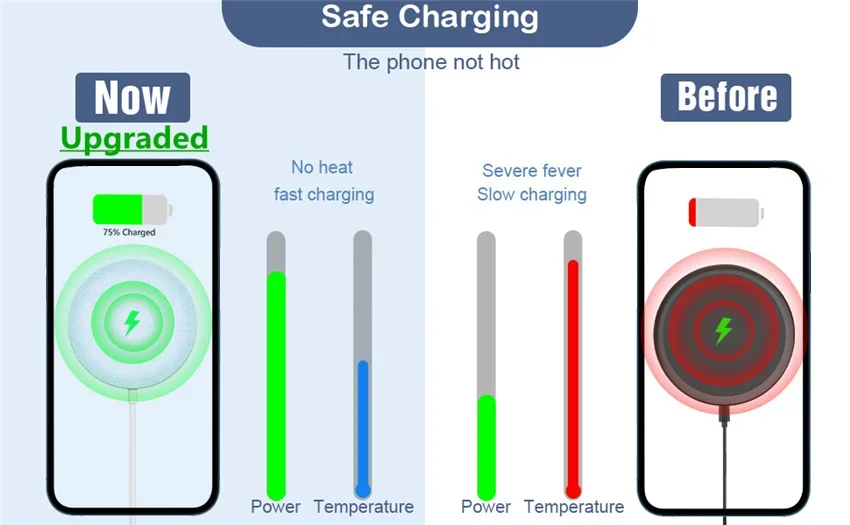 ★ Intelligent Protection★As with Charger, for iPhone or vikefon magnetic wireless charger might get slightly warmer while for iPhone charges. To extend the lifespan of your battery, if the battery gets too warm, software might limit charging above 80 percent.