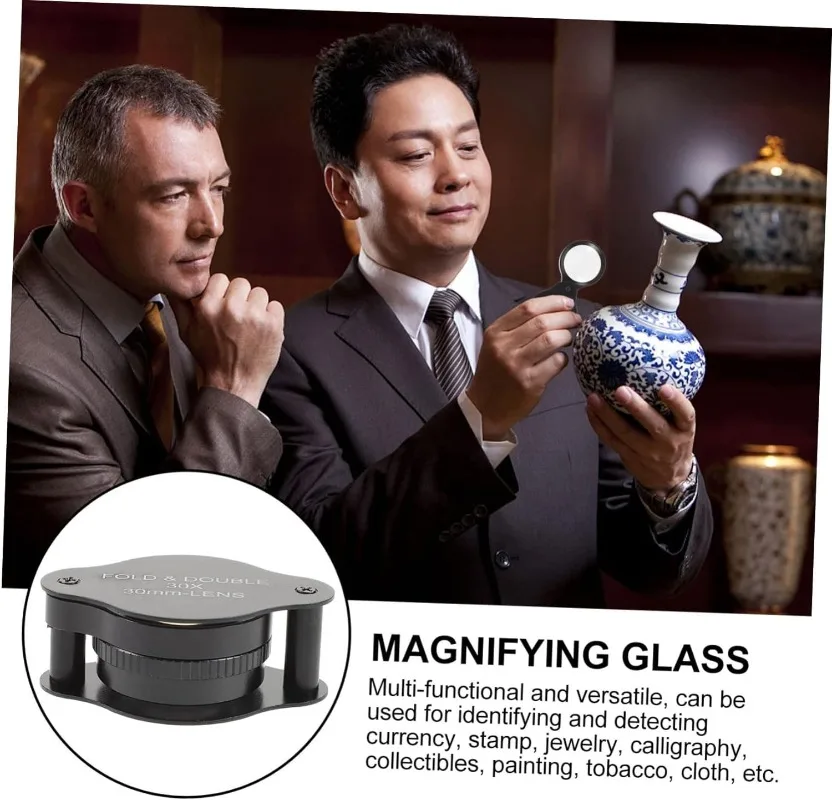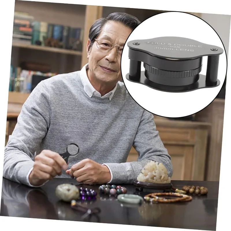 30x Magnifier 30mm Full Optical Glass Lens Metal Portable Folding Magnifier Stamps Jewelry Appraisal Reading