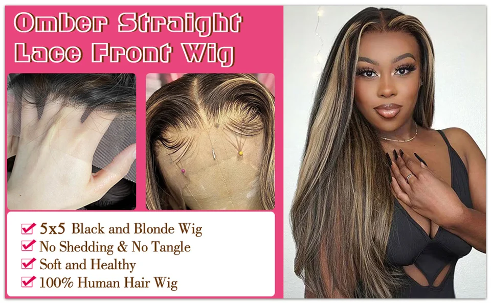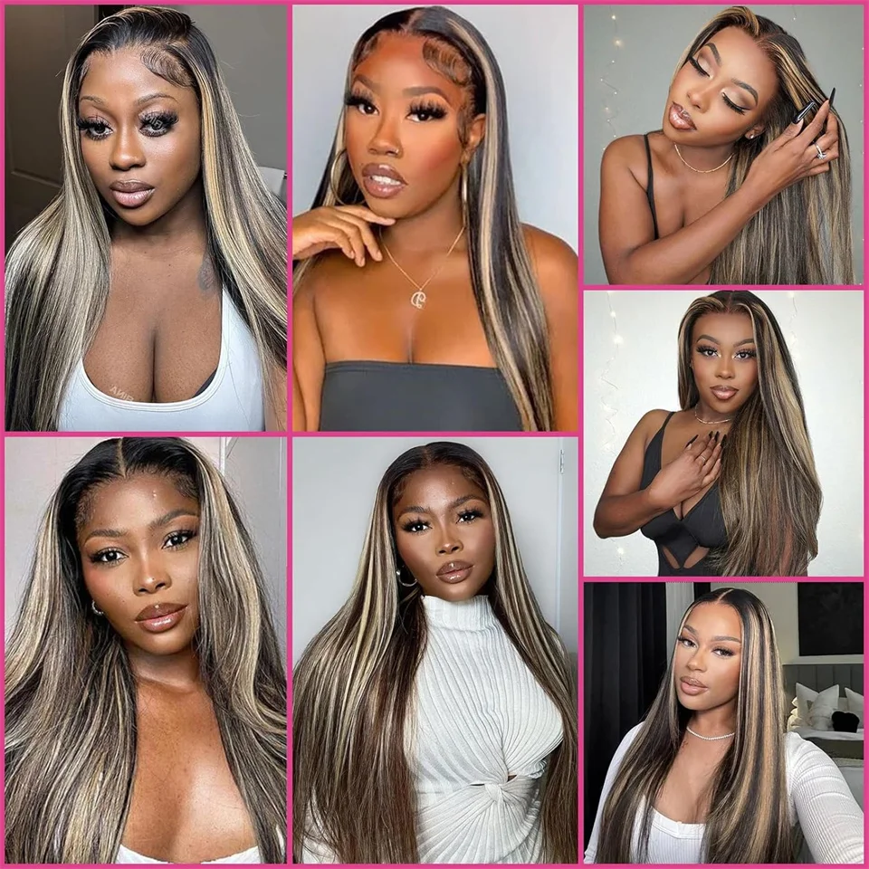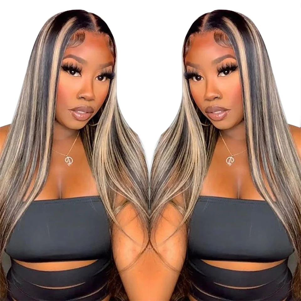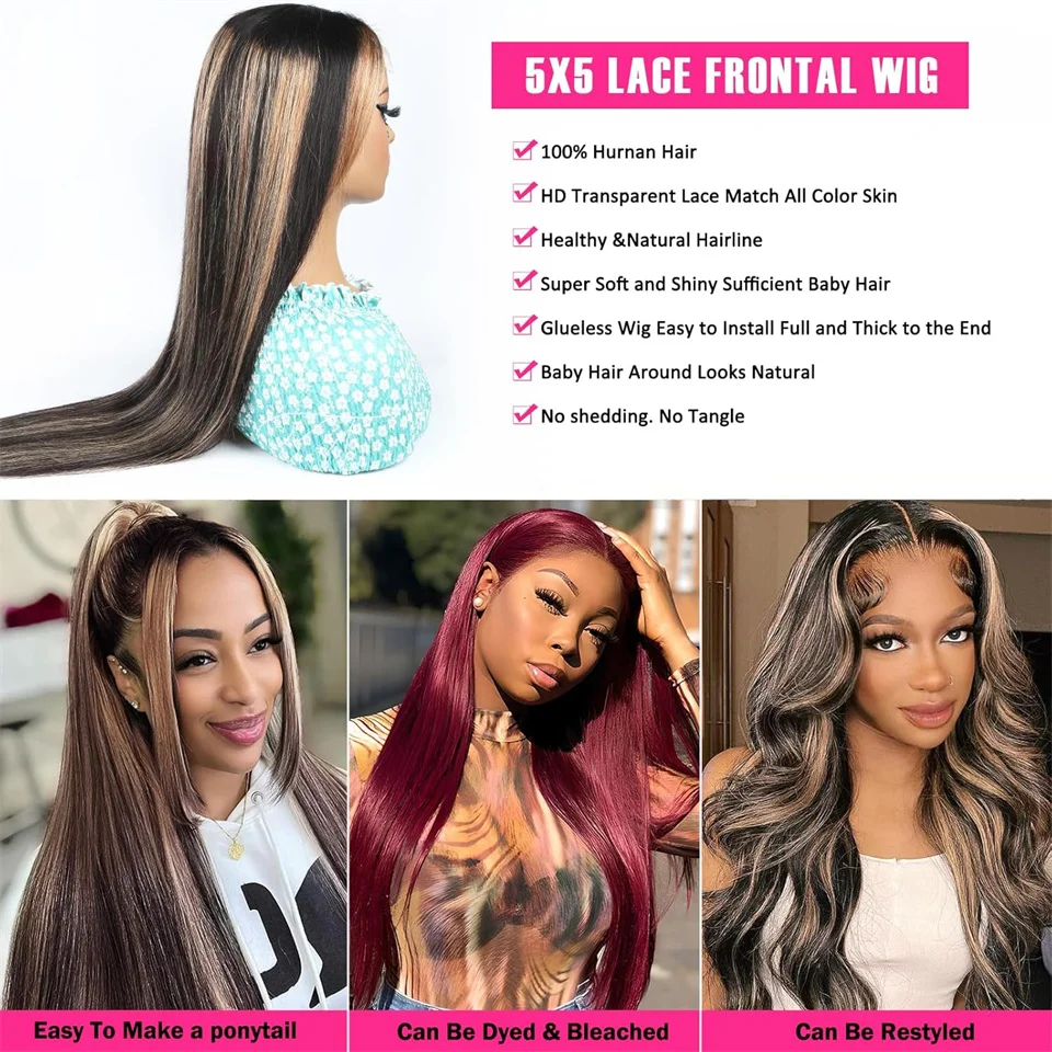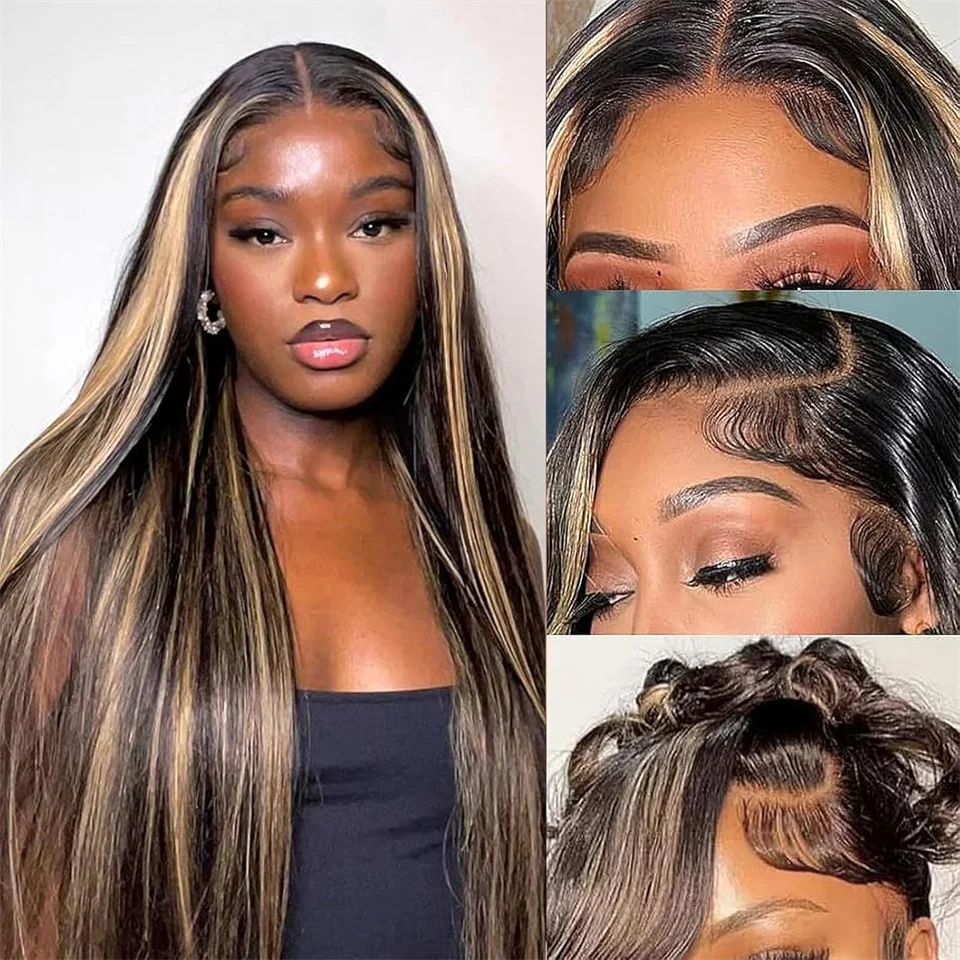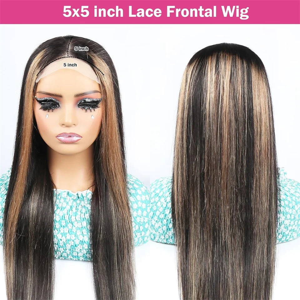 34inch 5×5 Pre Cut Lace Straight Highlight Wig Human Hair Preplucked P1B/27 Blonde Straight Wear And Go Glueless Wigs Human Hair