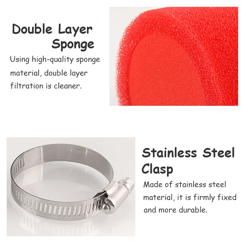 35/38/40/42/45/48/50mm Air Filter Black/Red Double Sponge Filter Cleaner Off Road Motorcycle ATV Beach Dirt Pit Bike Accessories
