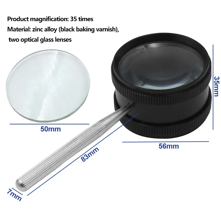 35X Zinc Alloy Handheld Magnifier Magnifying Glass K9 Optical Lens Removeable Silver Handle Jewelry Loupe Reading Tool
