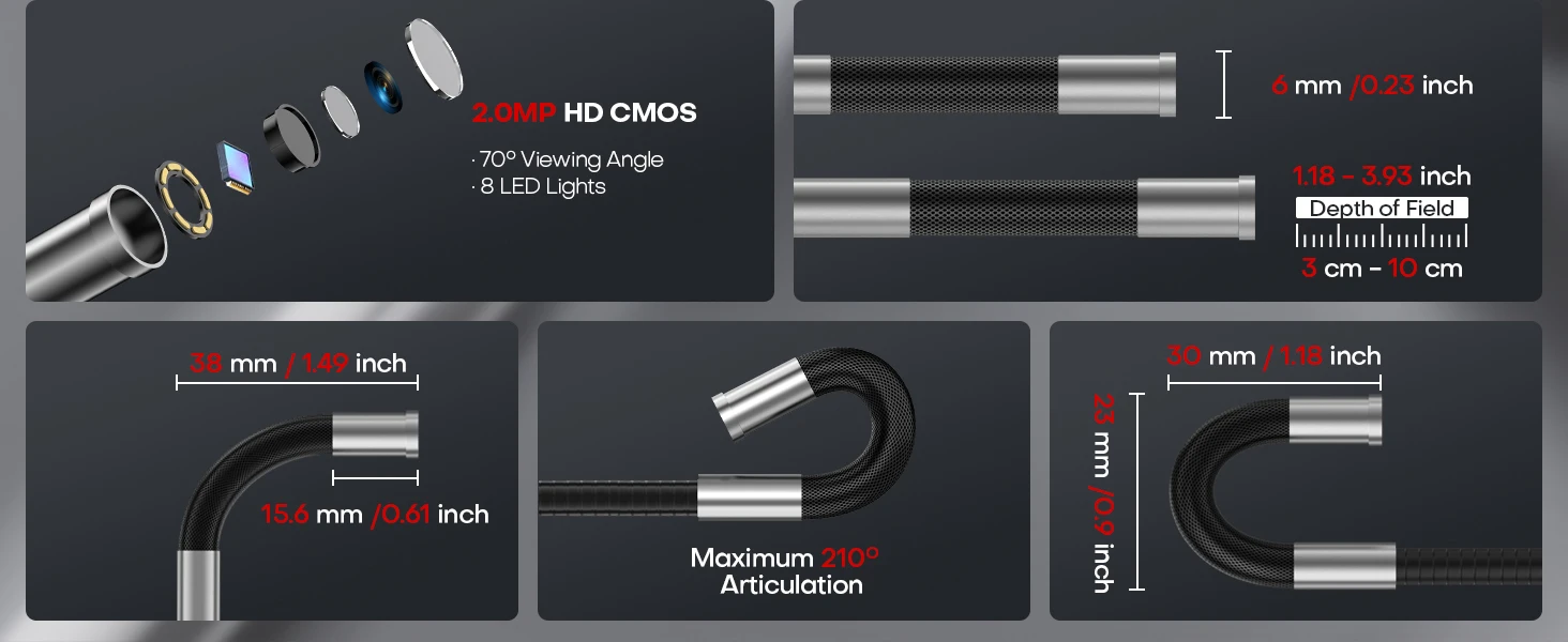 This Articulating Borescope is an important product for the global car aftermarket. It is specially used to detect narrow bending spaces that are difficult to enter, such as car evaporator, combustion chambers, and three-way catalytic sensors. Equipped with a two-way 360 steering probe. You can easily observe all angles inside the machine. Ideal for car repair store and car enthusiasts