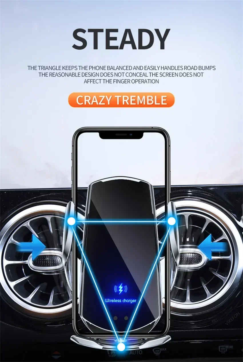 360-degree rotating cradle provides flexible choice of watching your phone or GPS while driving. That means there will be no blocked vision and you can get a perfect viewing angle with the car wireless charger mount.