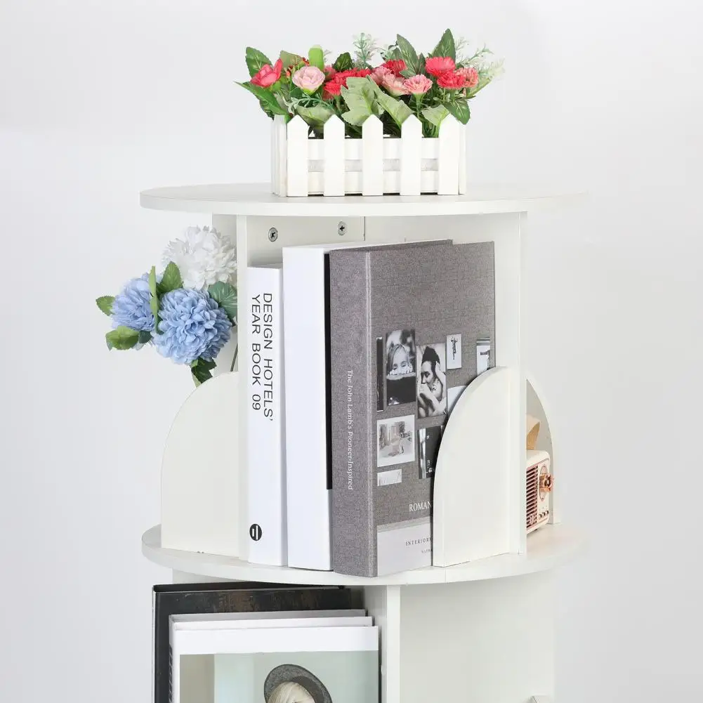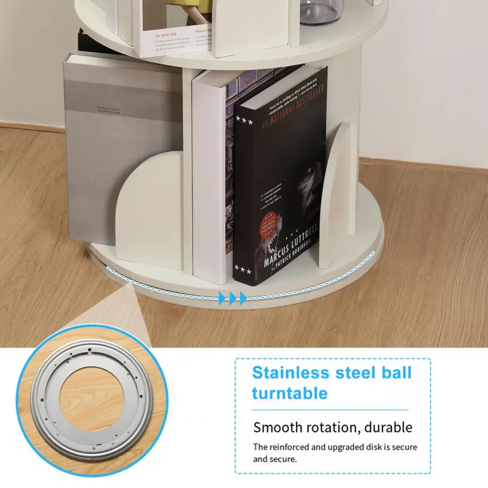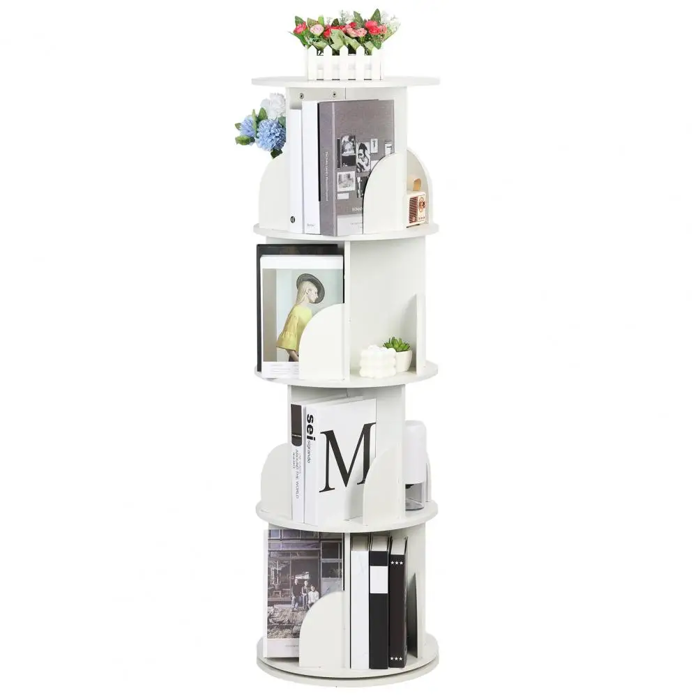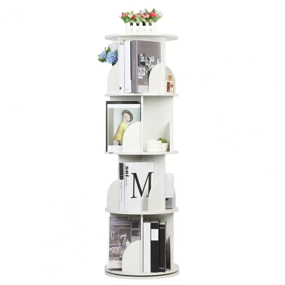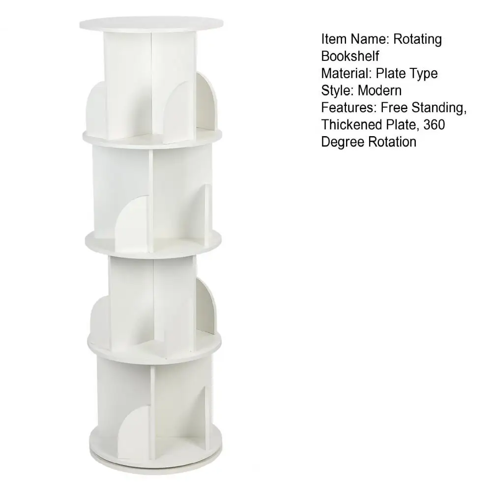 360 Rotation Spinning Bookshelf Display 4 Tier Rotating Bookshelf Standing Bookcase, Small Corner Bookcase Storage Organizer