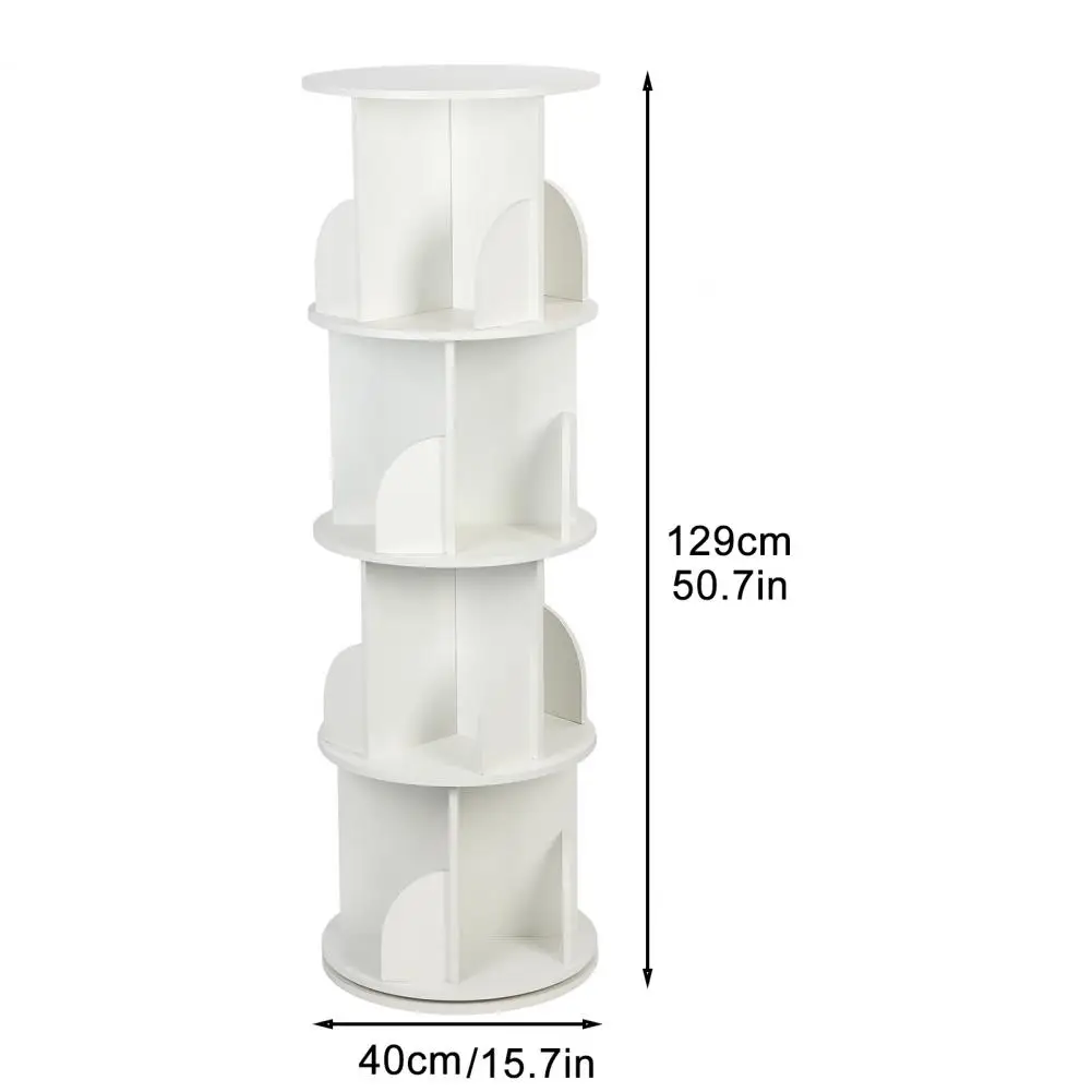 Space-Saving Design: The rotating bookshelf furniture fits into the corner of any space with a compact floor area, utilizing unused small spaces can maximize enlarging your living space and make your place more personal. Overall dimension: 15.7" D x 15.7" W x 50.8'' H.