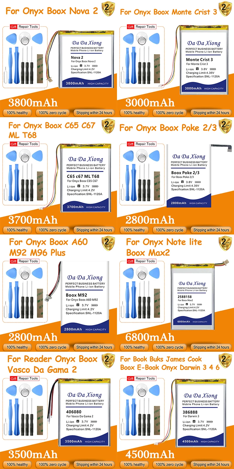386888 2588158 Nova2 406080 Battery For Onyx Boox Max Nova Darwin Crist Gama 2 3 4 6 M92 A60 C65 C67 M96 Plus + Kit Tools