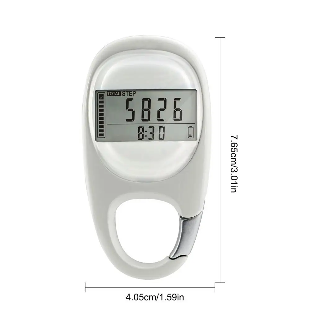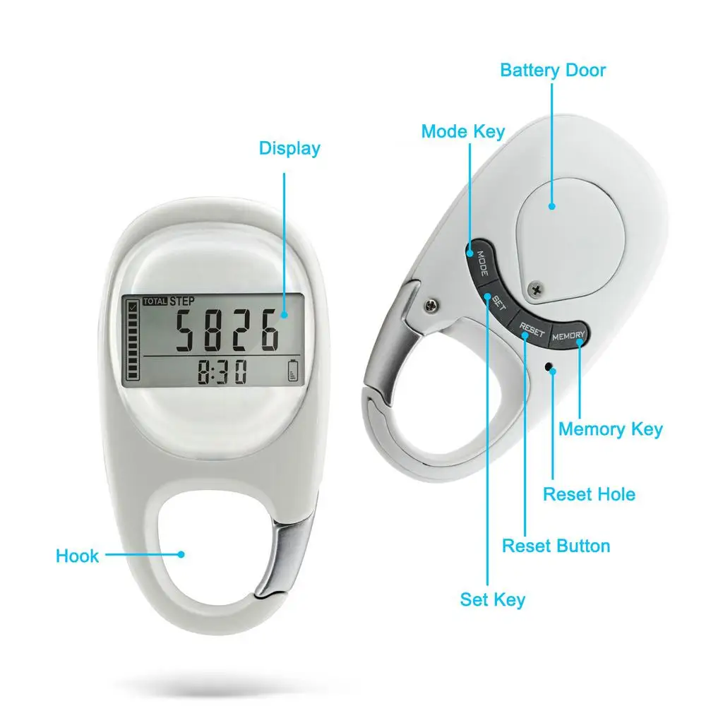 The 3D Induction Pedometer is small and portable with a carabiner design. The humanized design provides a simple operation, easy to use for the elderly and children.