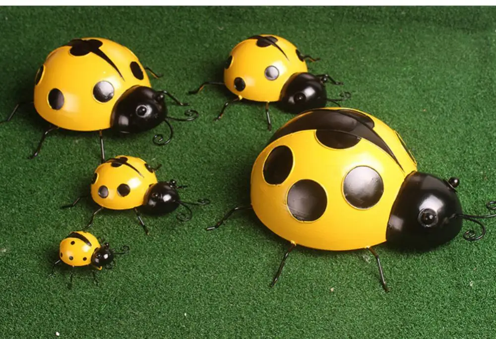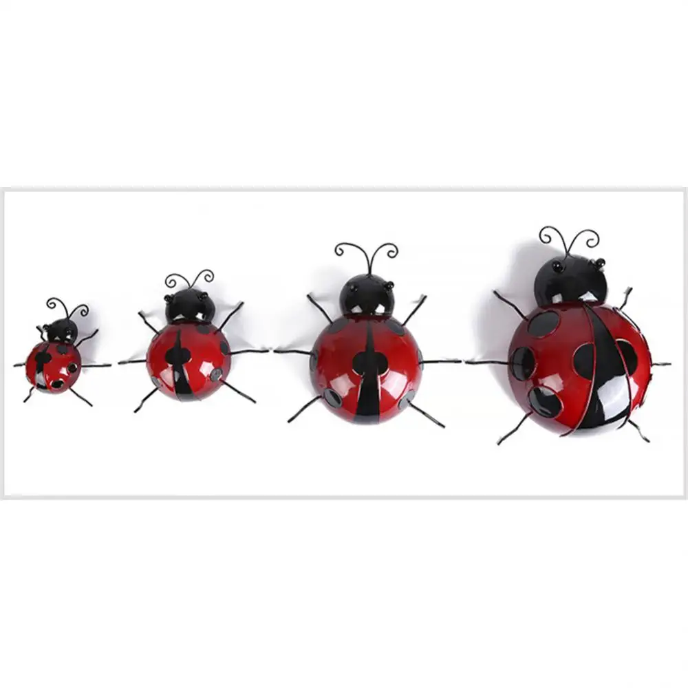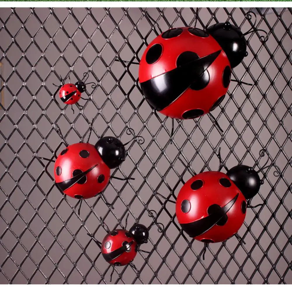 3D Metal Ladybugs Wall Mounted Decor Garden Creative Cute Insect Sculptures Outdoor Patio Lawn Fence Statues Decoration Supplies