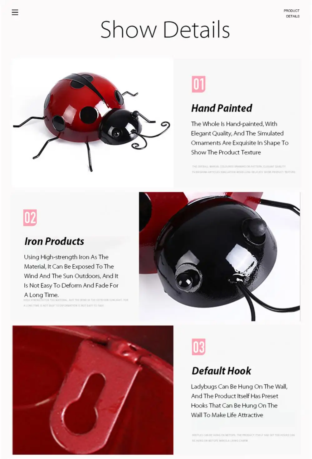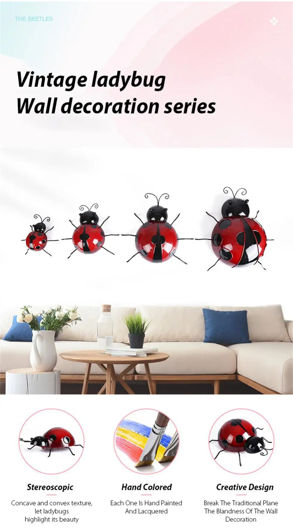 Measuring 3.93" (small) and 6.29" (large), these adorable ladybug wall art pieces are perfect for adding a touch of nature to your walls or as a charming table decoration. The hooks on the back make them easy to hang anywhere you like.