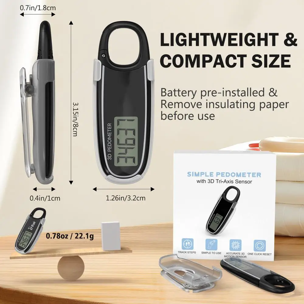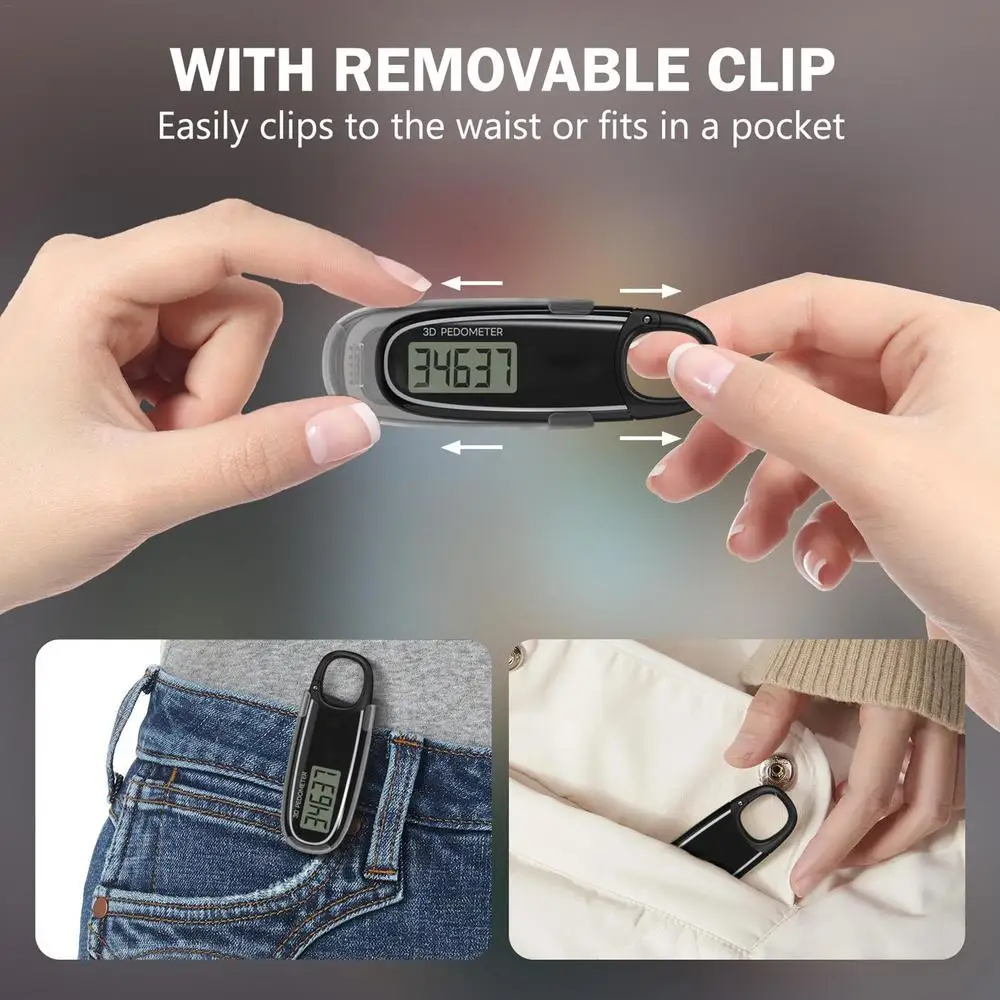 4.Easy to Use: Every step is effortlessly recorded with the advanced 3D sensor technology of this pedometer. From the first button press, its continuous tracking ability ensures accurate information for long-term fitness journeys.