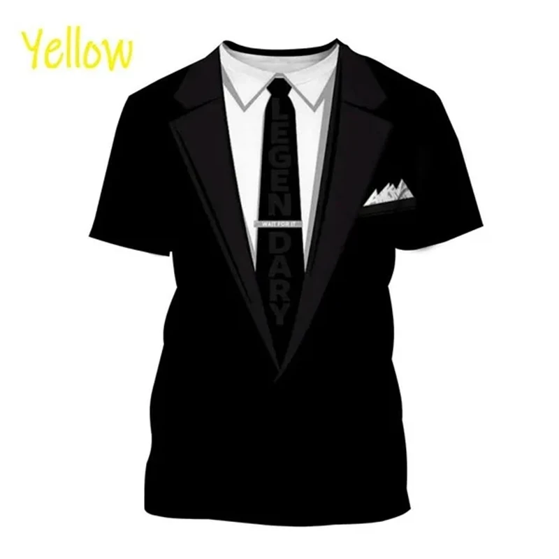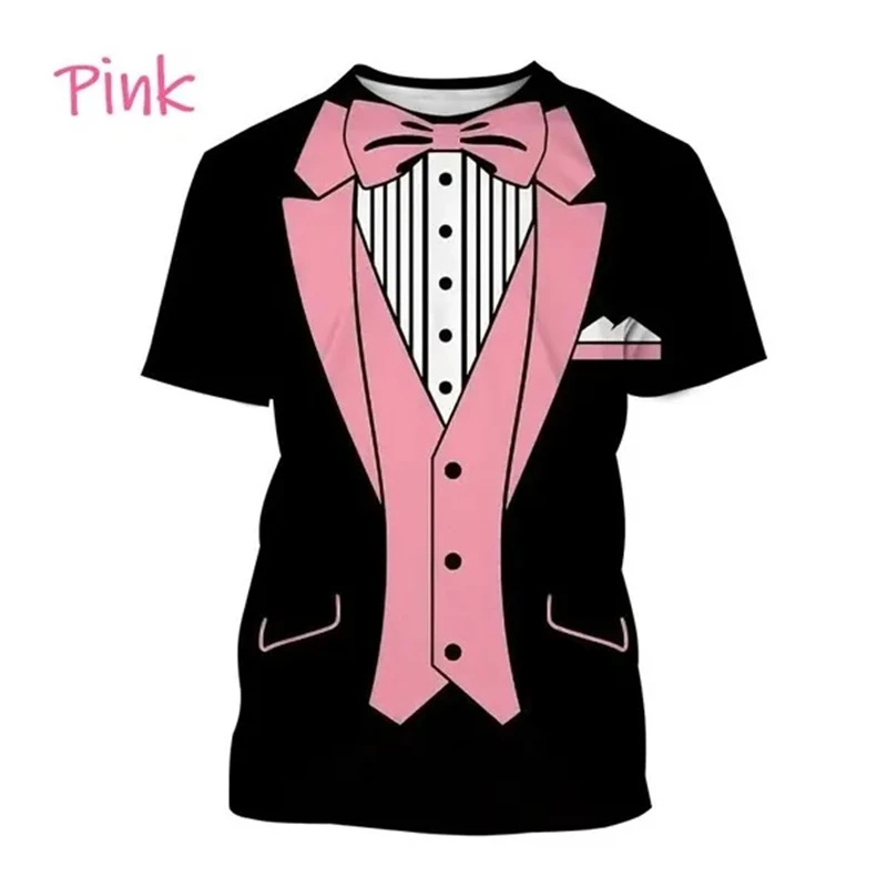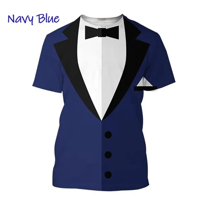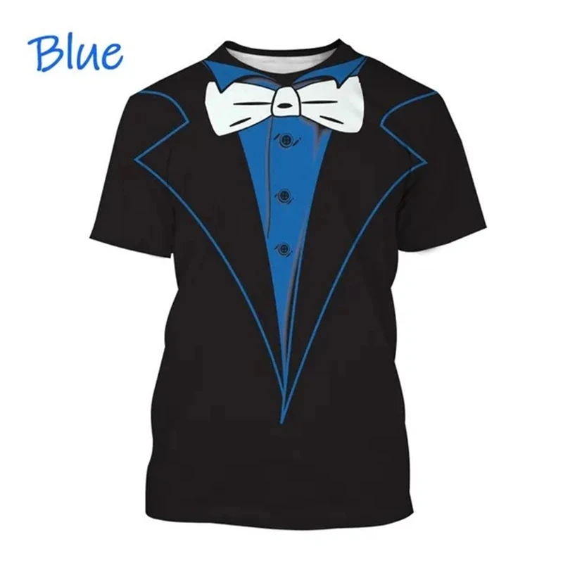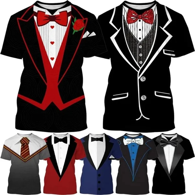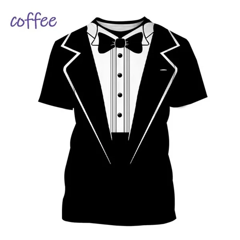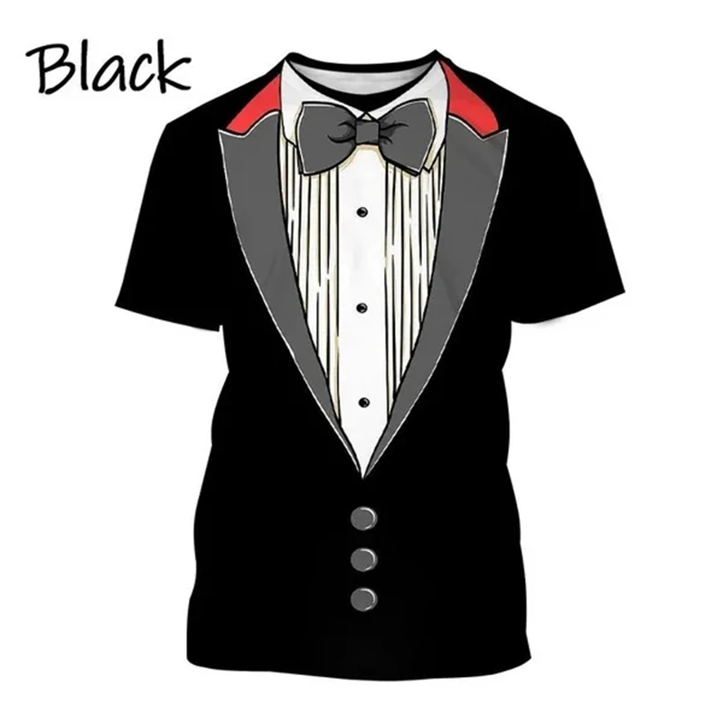 3D Printed T-shirt Summer Men’s Clothes Tuxedo Retro Tie Suit Printed T-shirt Casual Short-sleeved Street Funny Fake Suit Tops