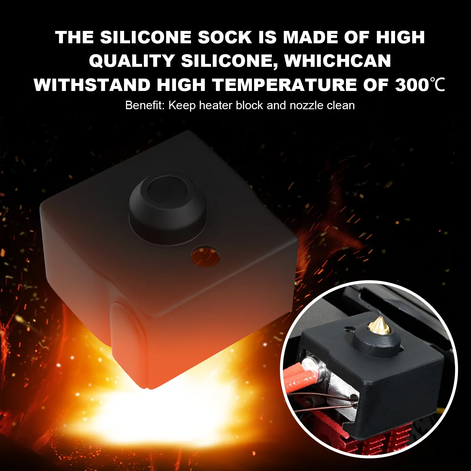 1. Effectively keeps heater blocks and nozzles clean Heat-resistant silicone that does not stick to any other composition of print material.