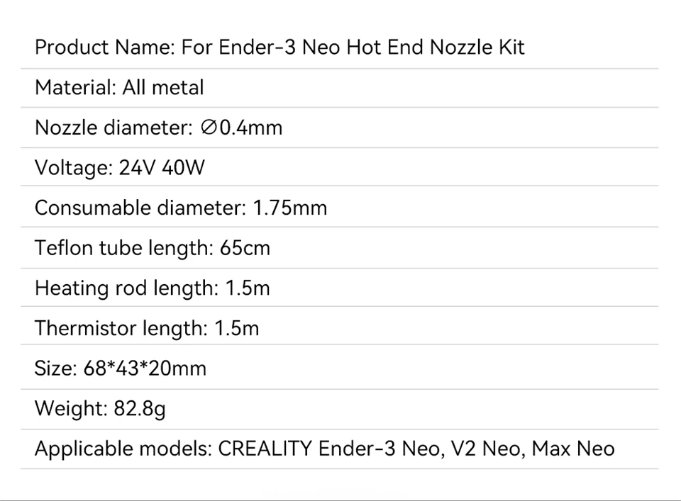 3D Printer Part for Ender 3 Neo J-head Hotend Kit 24V 40W Ender 3 V2 Neo Ender 3 Max Neo Hotend Kit Heat Block Heater Thermistor