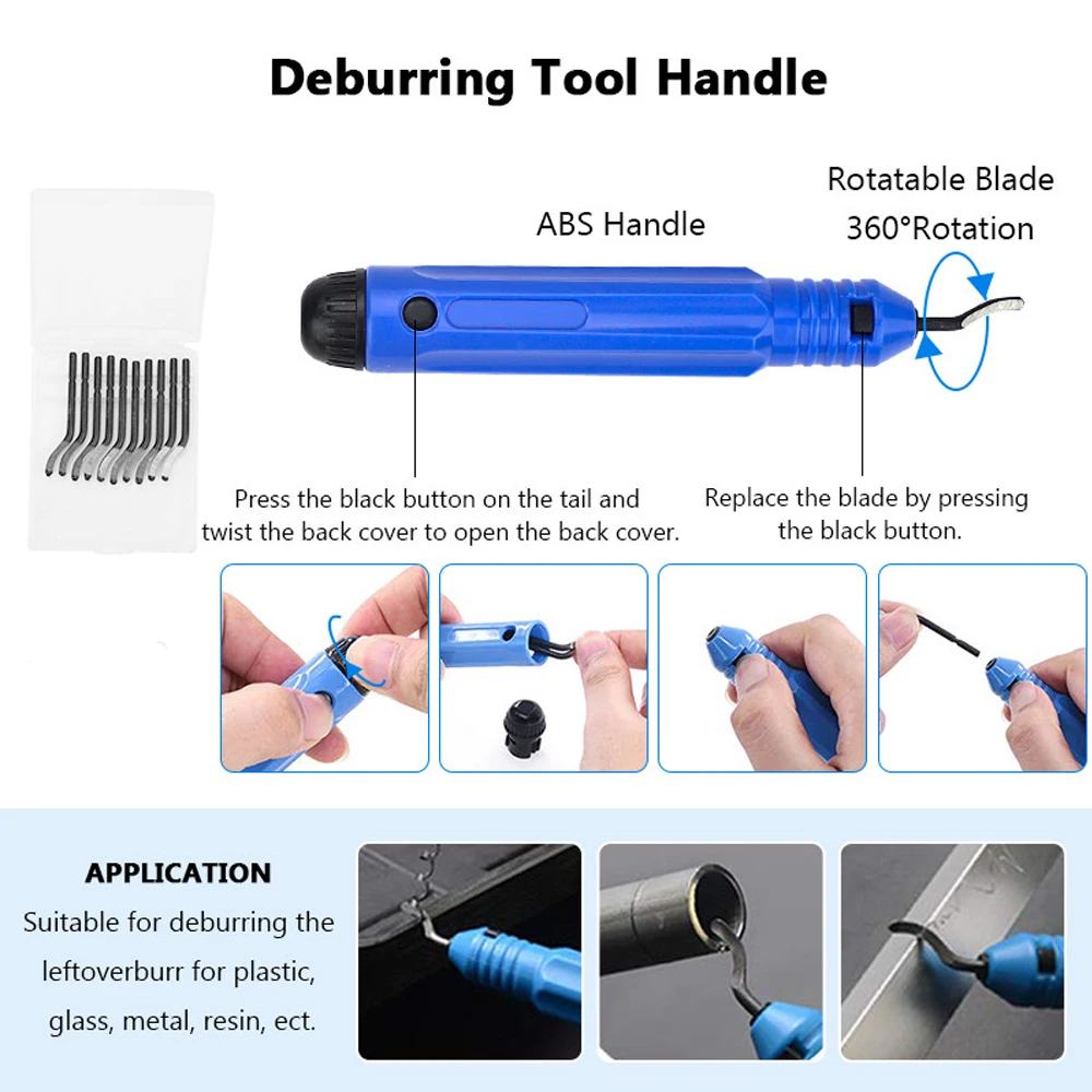Application: Suitable for deburring metal, plastic, wood. Offers easy, effortless deburring through multiple blades