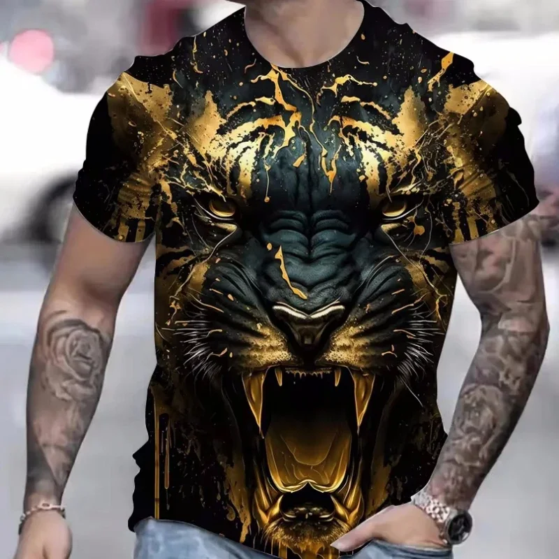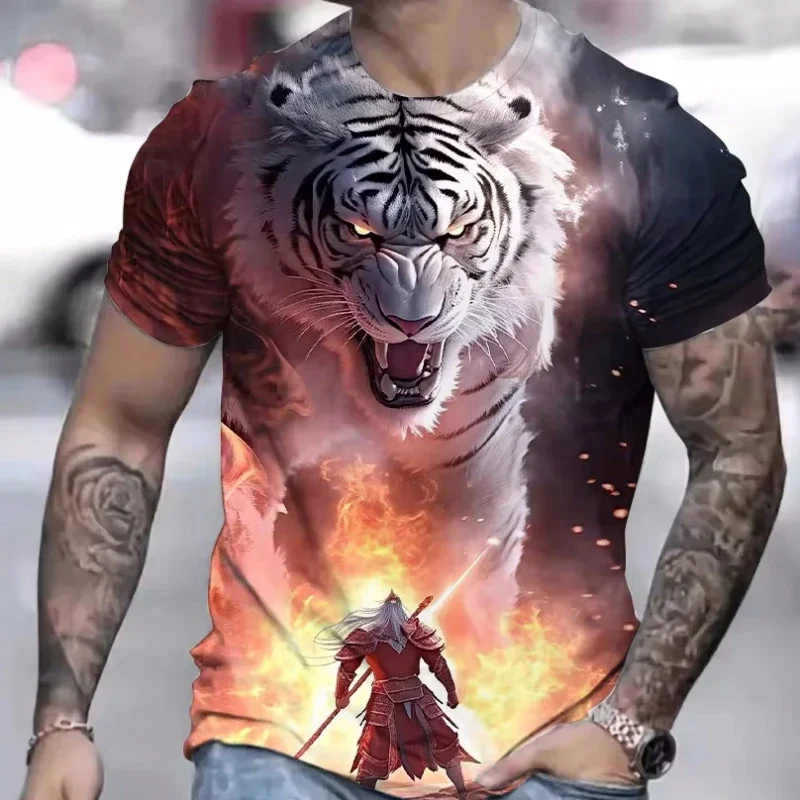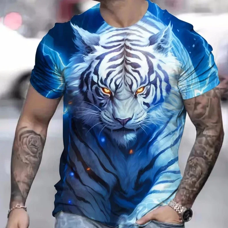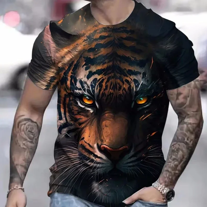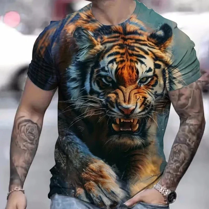 3d Tiger Print T-Shirts For Men Short Sleeve Tees Summer Quick Dry Pullover Top Loose Oversized Man Fashion Men T-Shirt