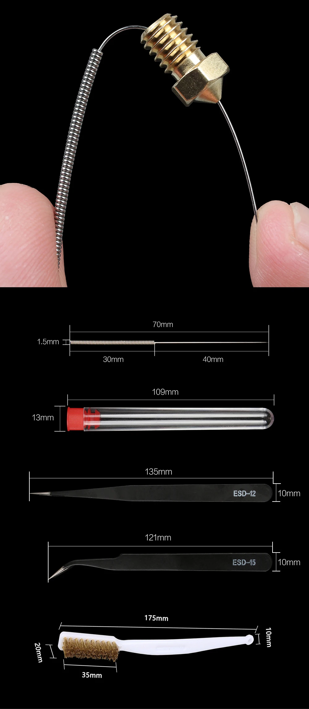 3DSWAY 10pcs/lot 3D Printer Parts Bendable Nozzle Cleaner Hotend Cleaning Needle Drill Bit Brush Tweezers Tool Kit for Ender 3