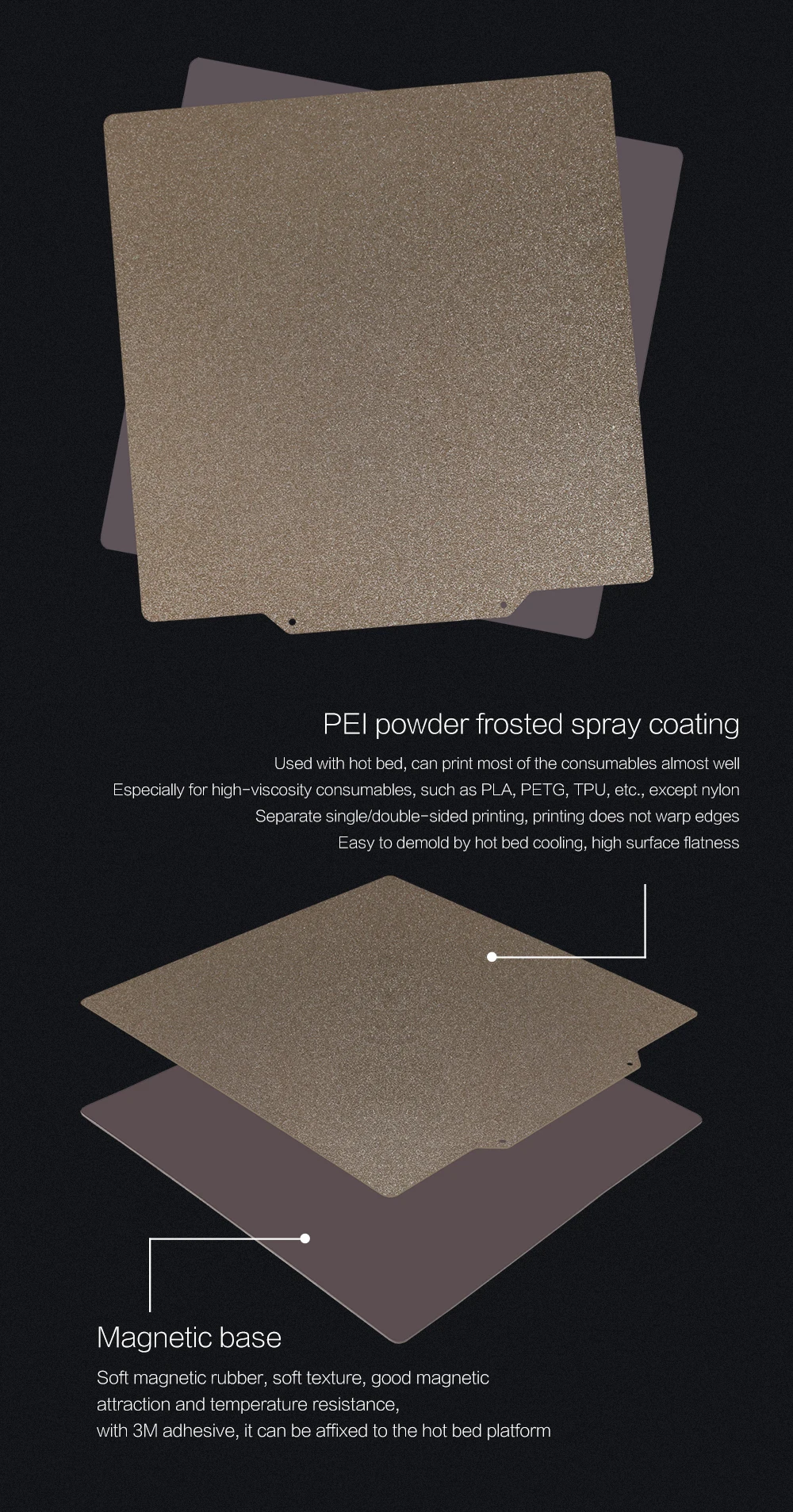 3DSWAY 3D Printer Parts Double Sided Textured PEI Powder Coated Spring Steel Sheet Build Plate Hot Bed 220/235/310/410 Ender 3