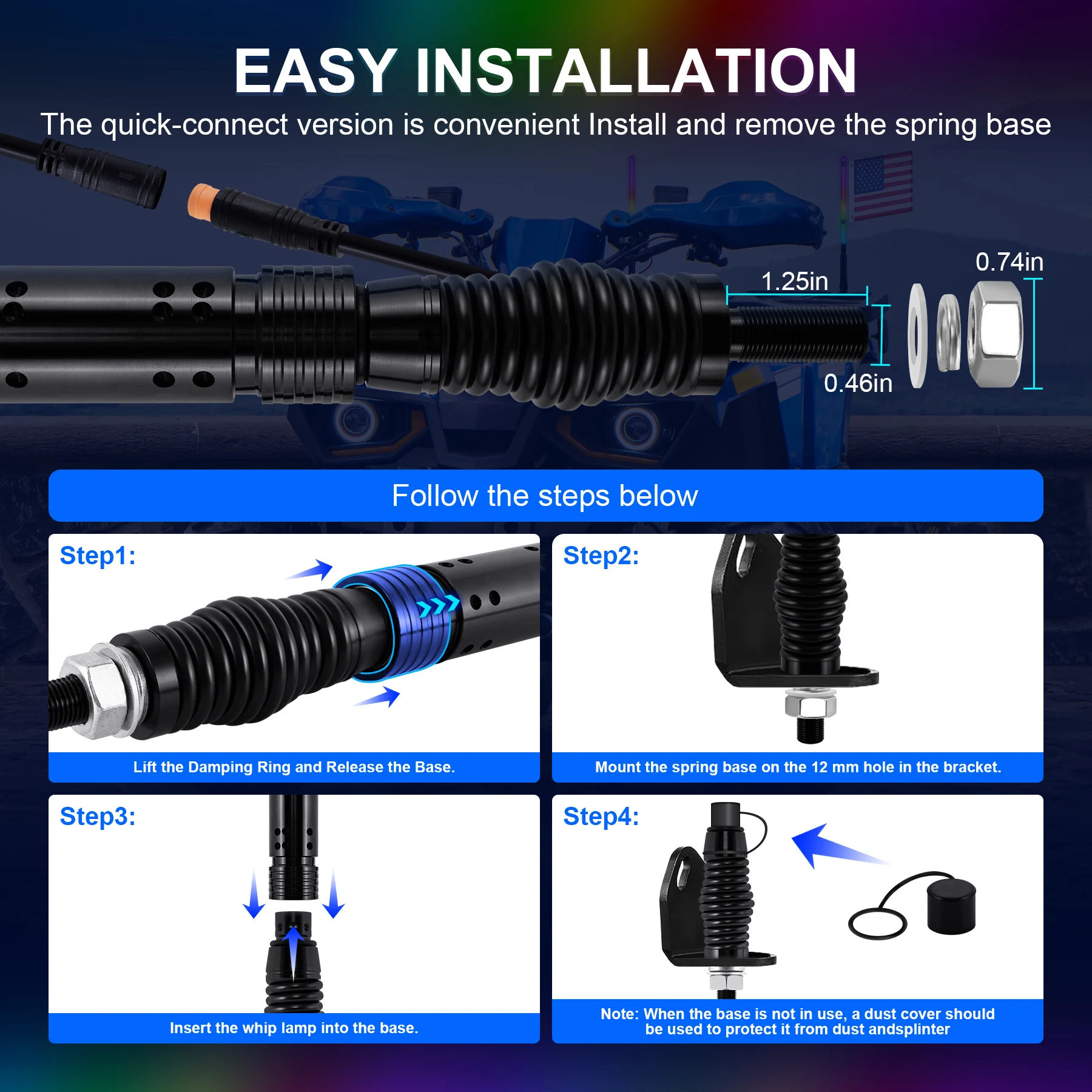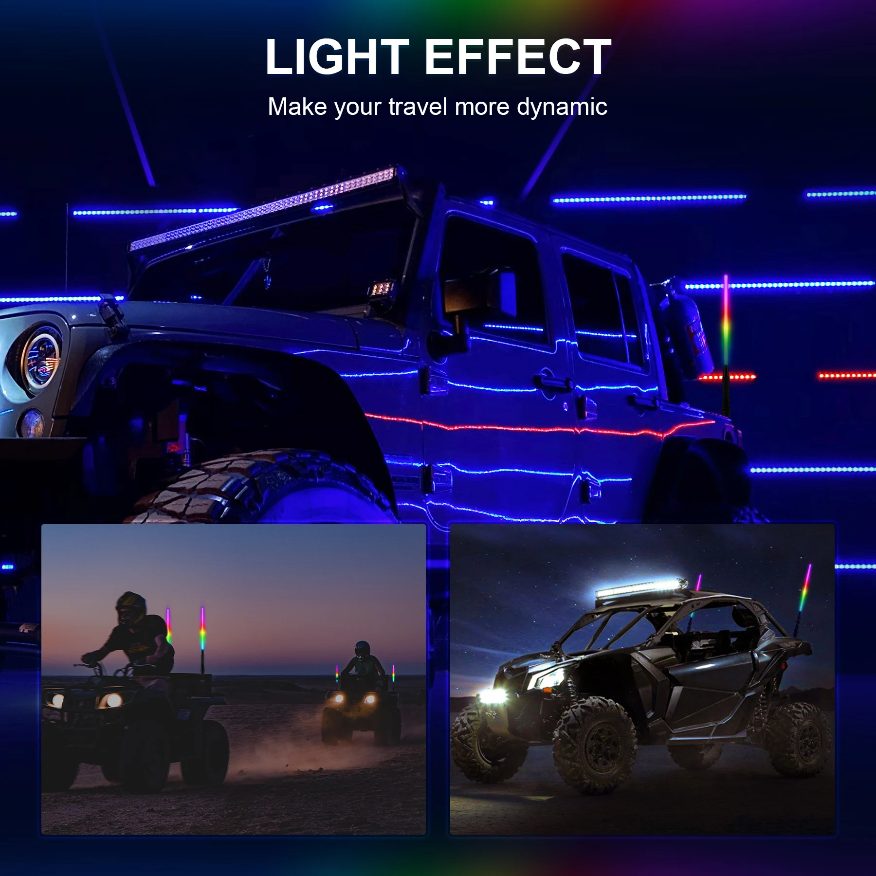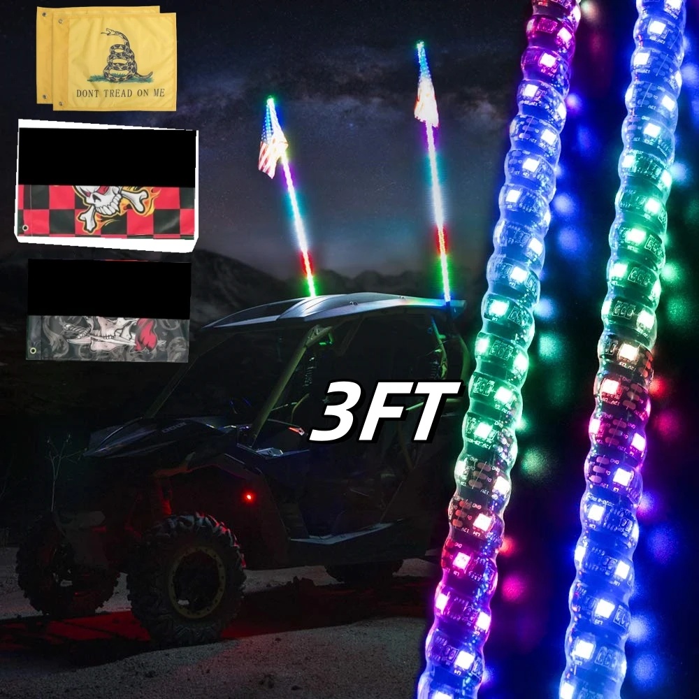3FT Led Whip Light Led Car Led Light RGB Waterproof Bendable Remote APP Music Control LED Flagpole Lamp for SUV ATV UTV RZR