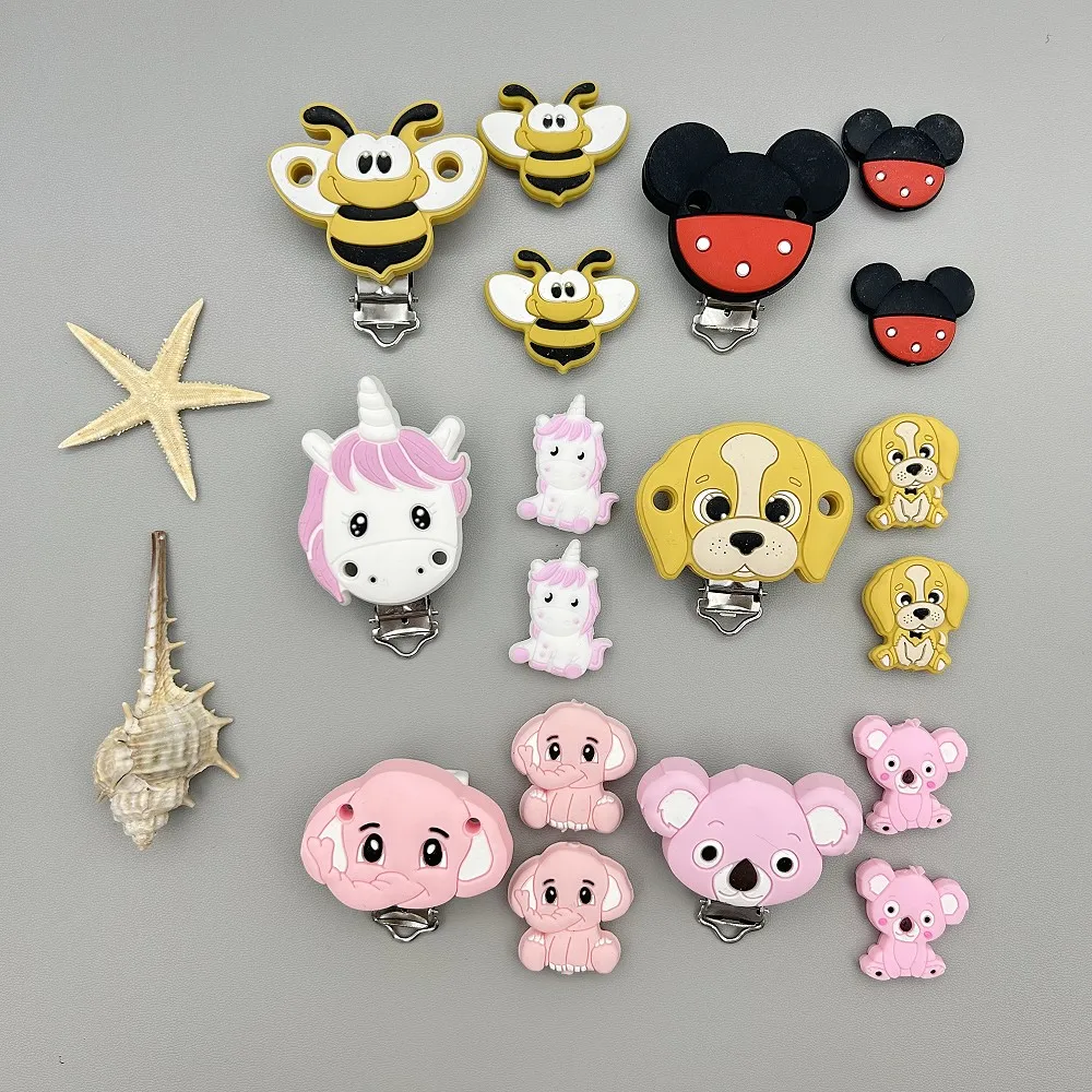 3PC Silicone Animal Clips Beads Bracket for Baby Pacifier Chain Holder Accessories Care Teether DIY Nipple BPA Free Baby Gifts