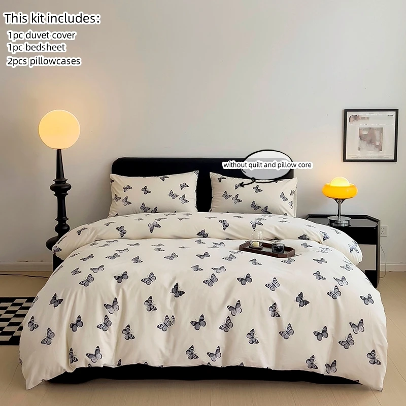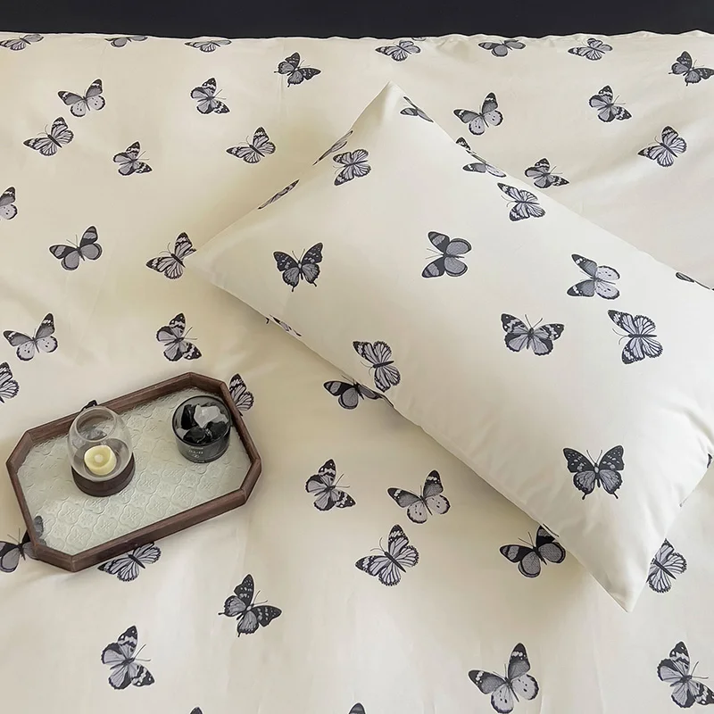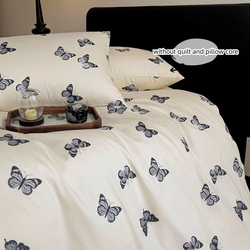 3pcs 100% Cotton Duvet Cover Set (1*Duvet Cover + 2*Pillowcase, Without Core), black butterfly Bedding Set, Soft Comfortable