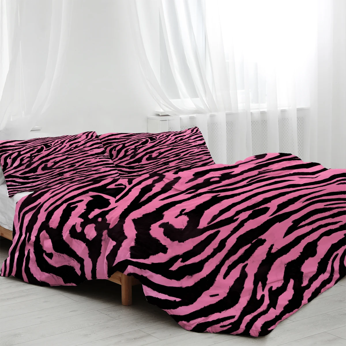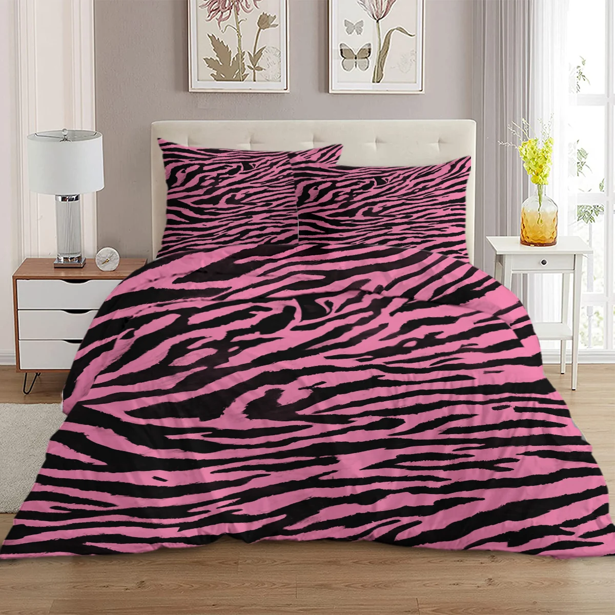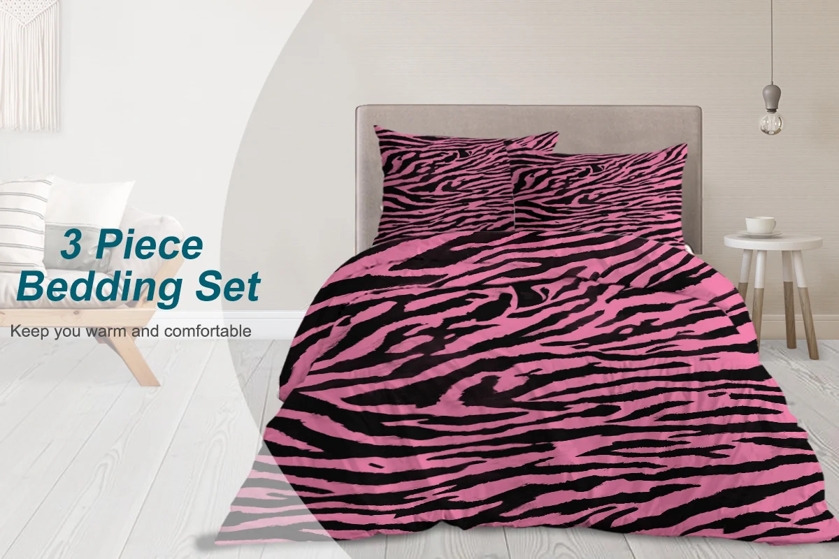 3pcs Bedding Set with 2 Pillowcases Comfortable and Minimalist Pink leopard print