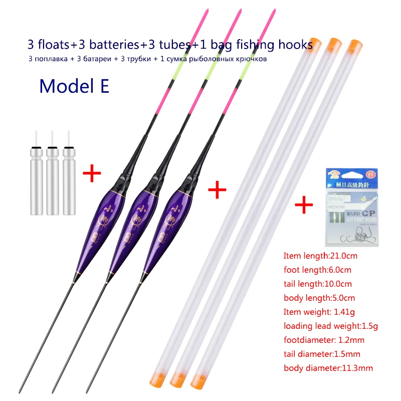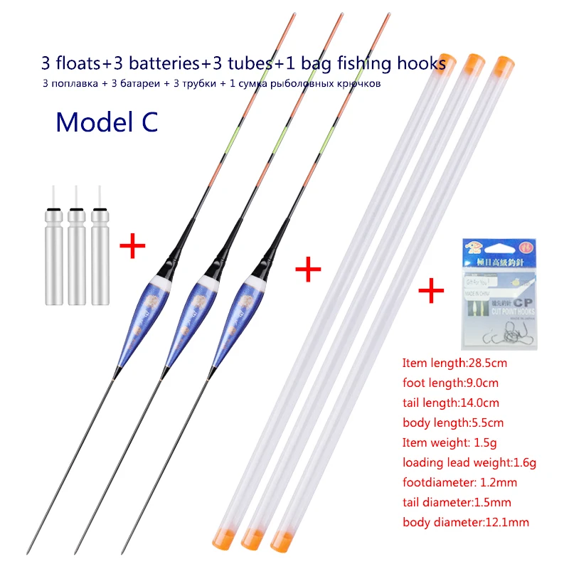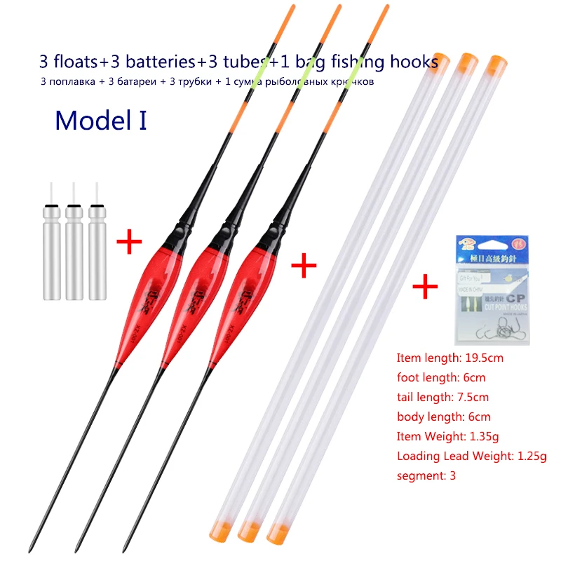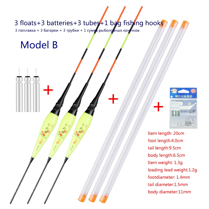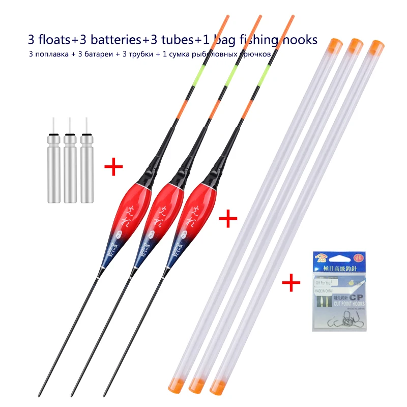 3pcs/lot Fishing Floats+3pcs Battery+3pcsFloat Tubes+1 Bag HooksNightNanoBuoy ElectricBoya Fresh Water FishingToolsTackle