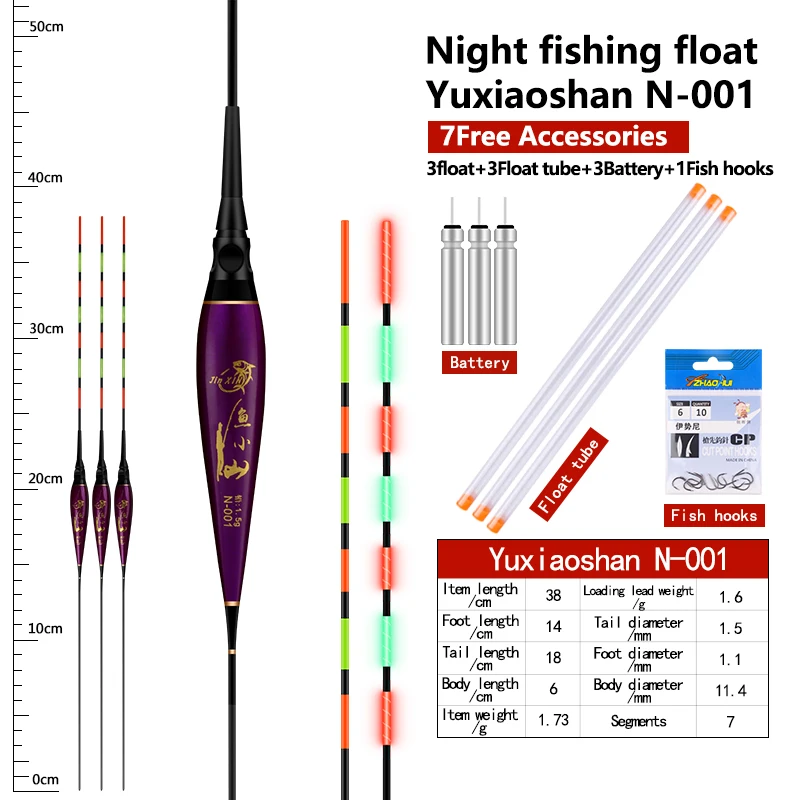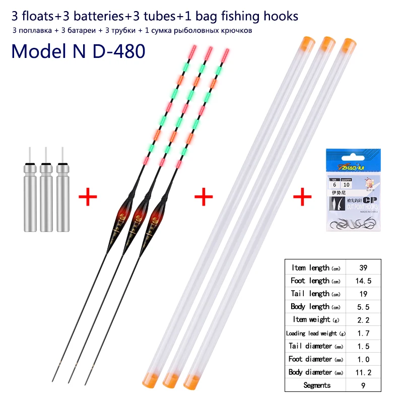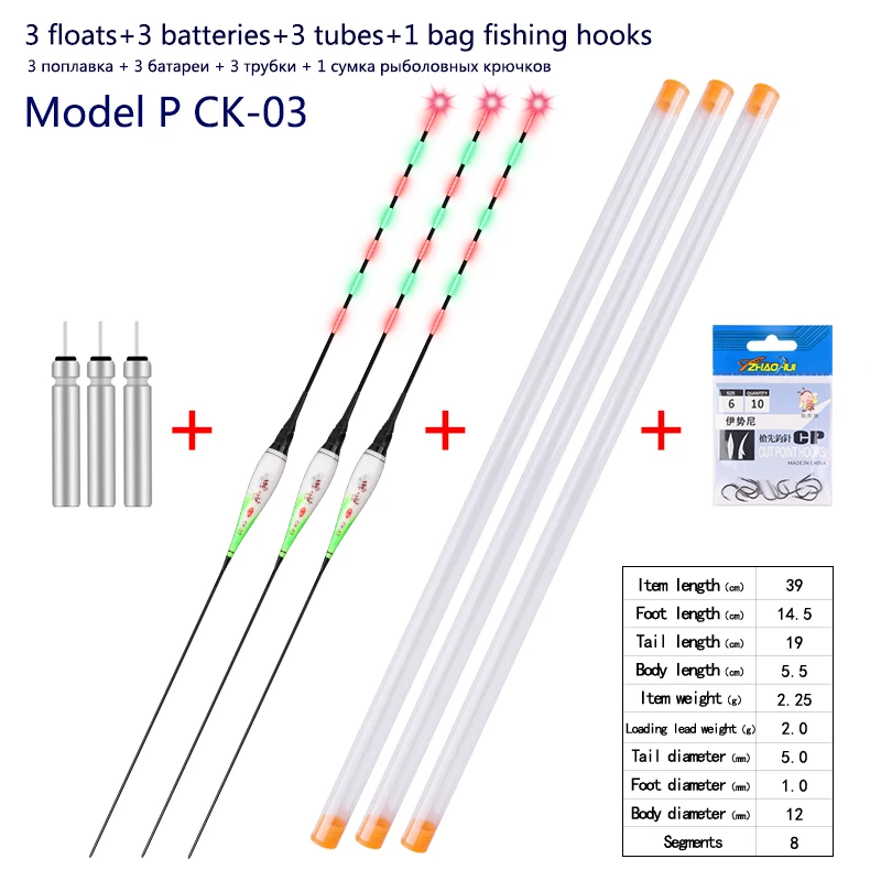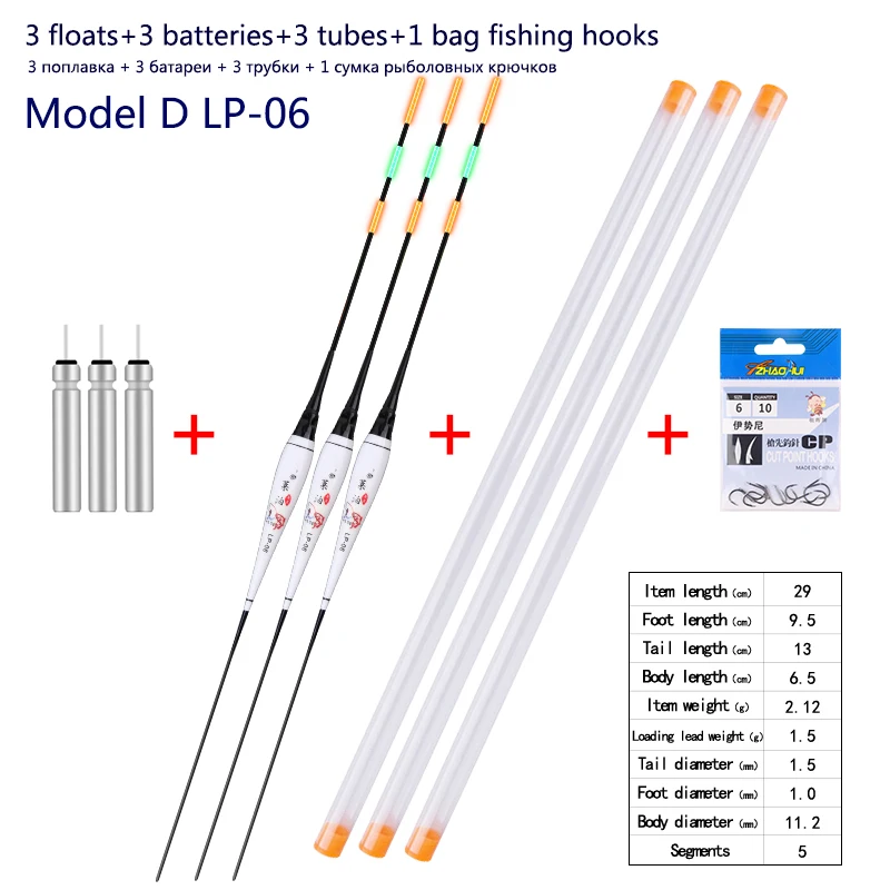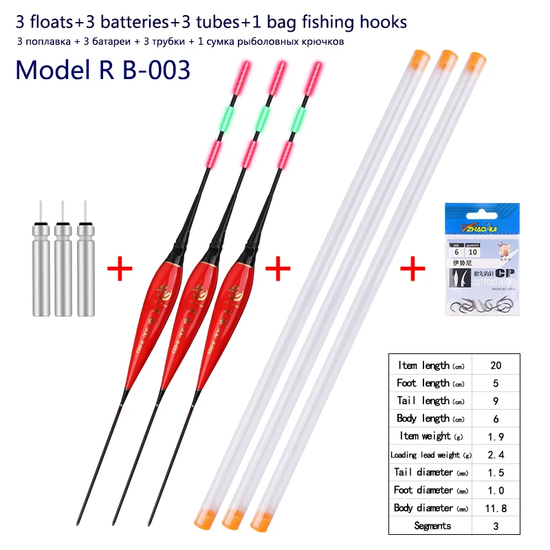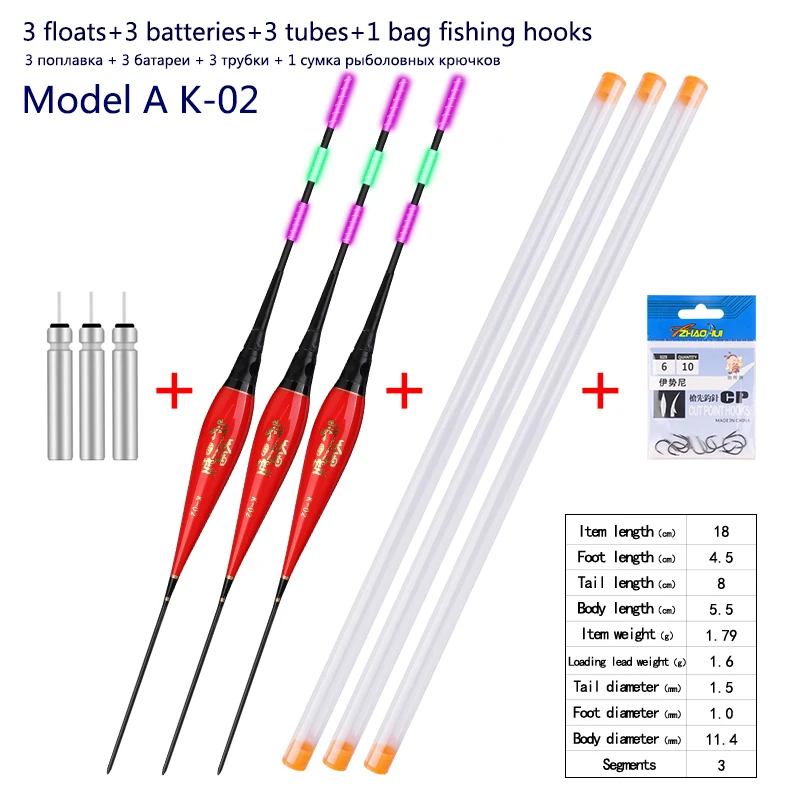 3pcs/lot Fishing Floats+3pcs Battery+3pcsFloat Tubes+1 Bag HooksNightNanoBuoy ElectricBoya Fresh Water FishingToolsTackle