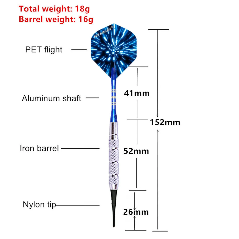3PCS Fox Smiling 18g Electronic Soft Tip Darts With Aluminum Darts Shafts And Nylon Tips For Indoor Darts Games