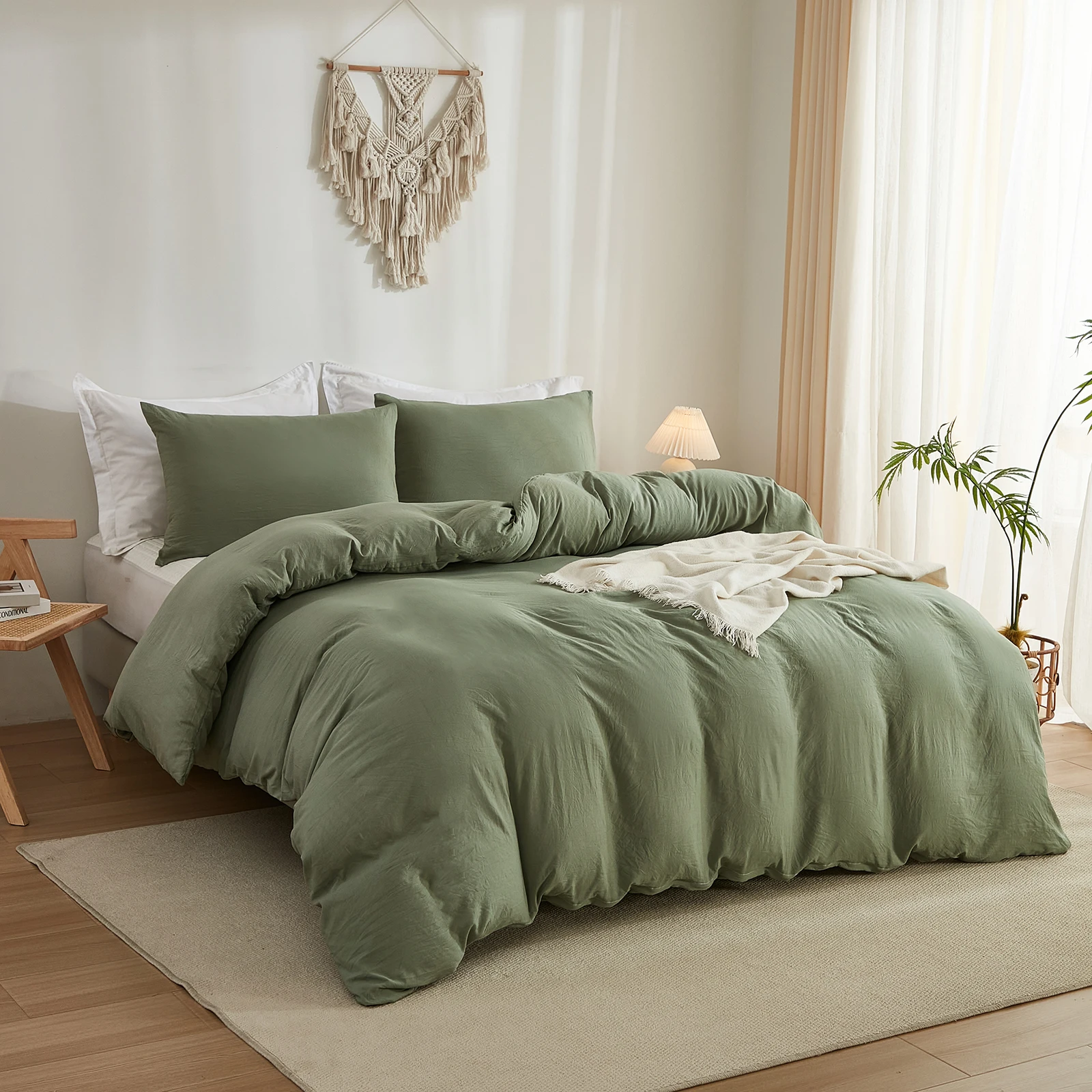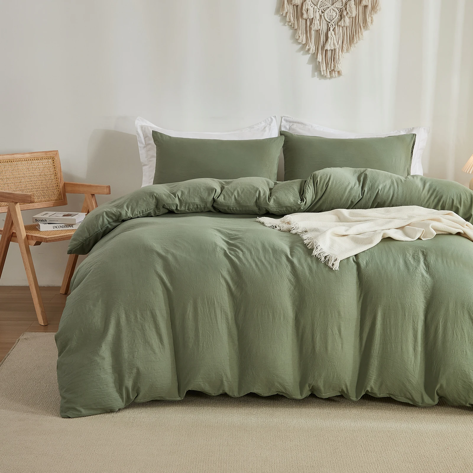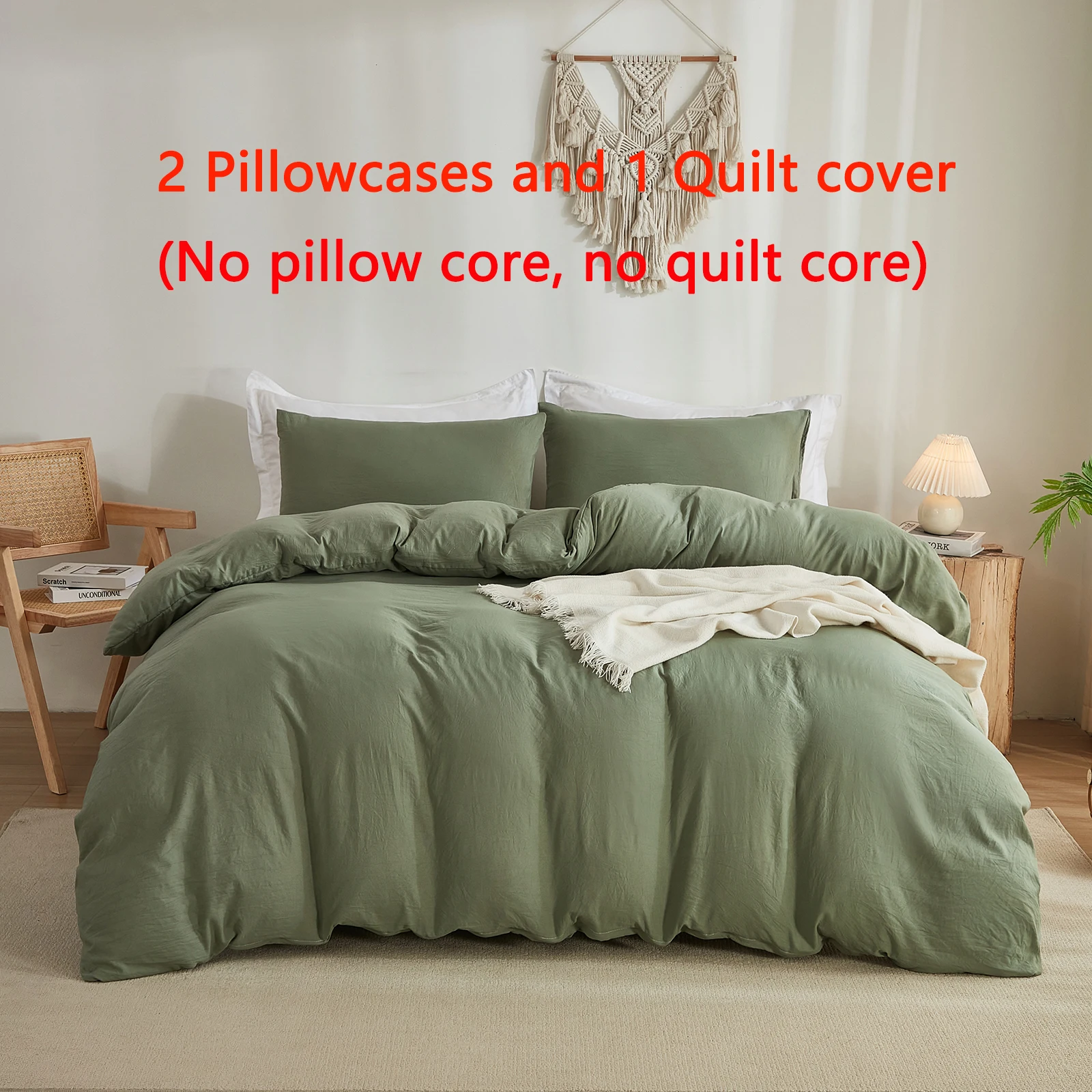 3PCS Green Duvet Cover Set Polyester Fibre Comforter Cover Terylene Bed Set Soft Lightweight Down Bedding Sets for All season