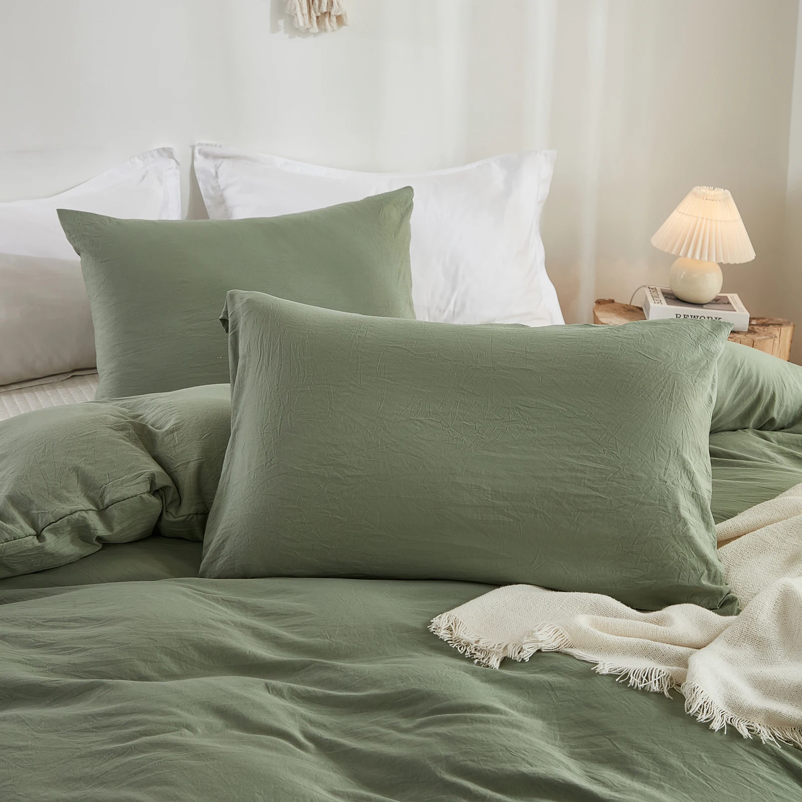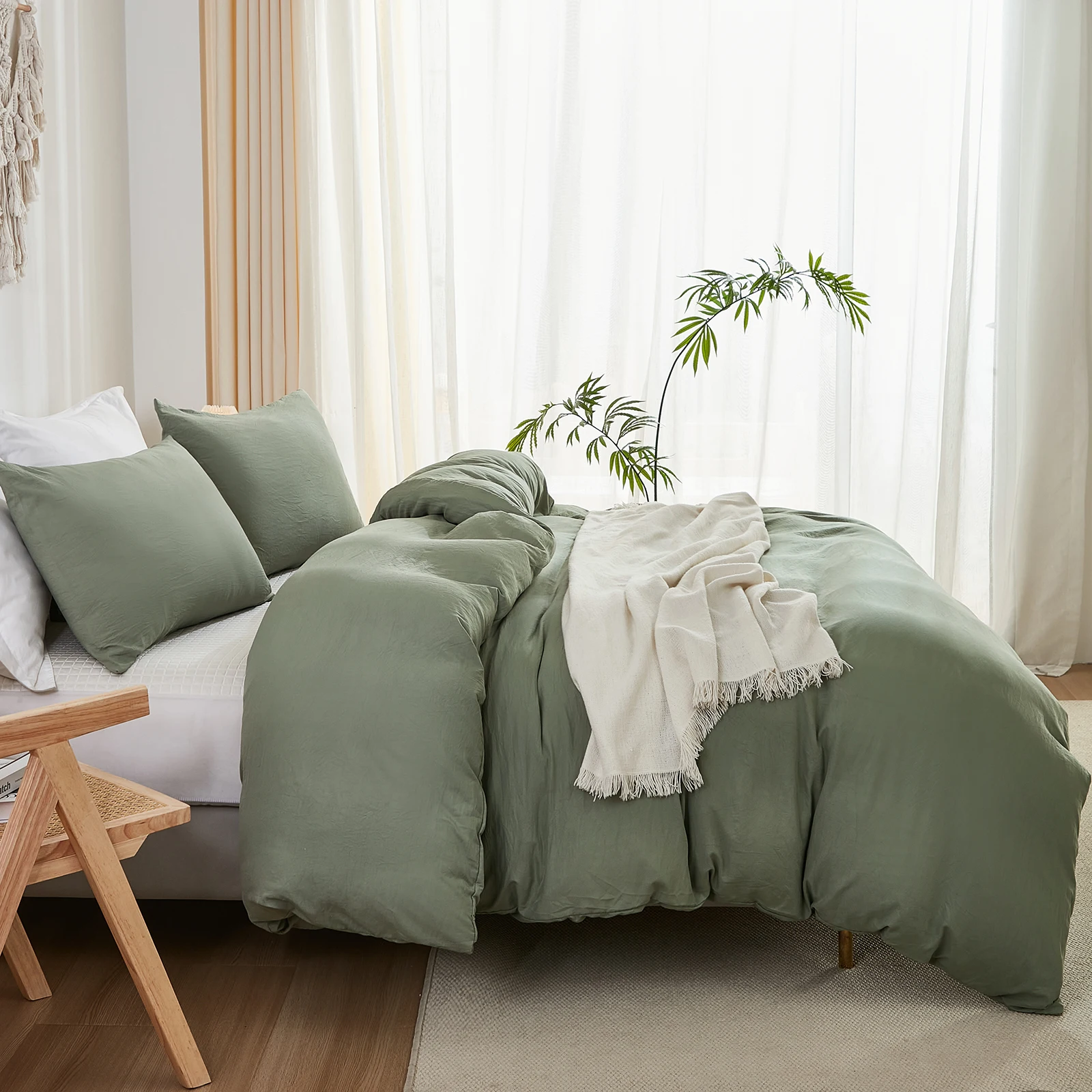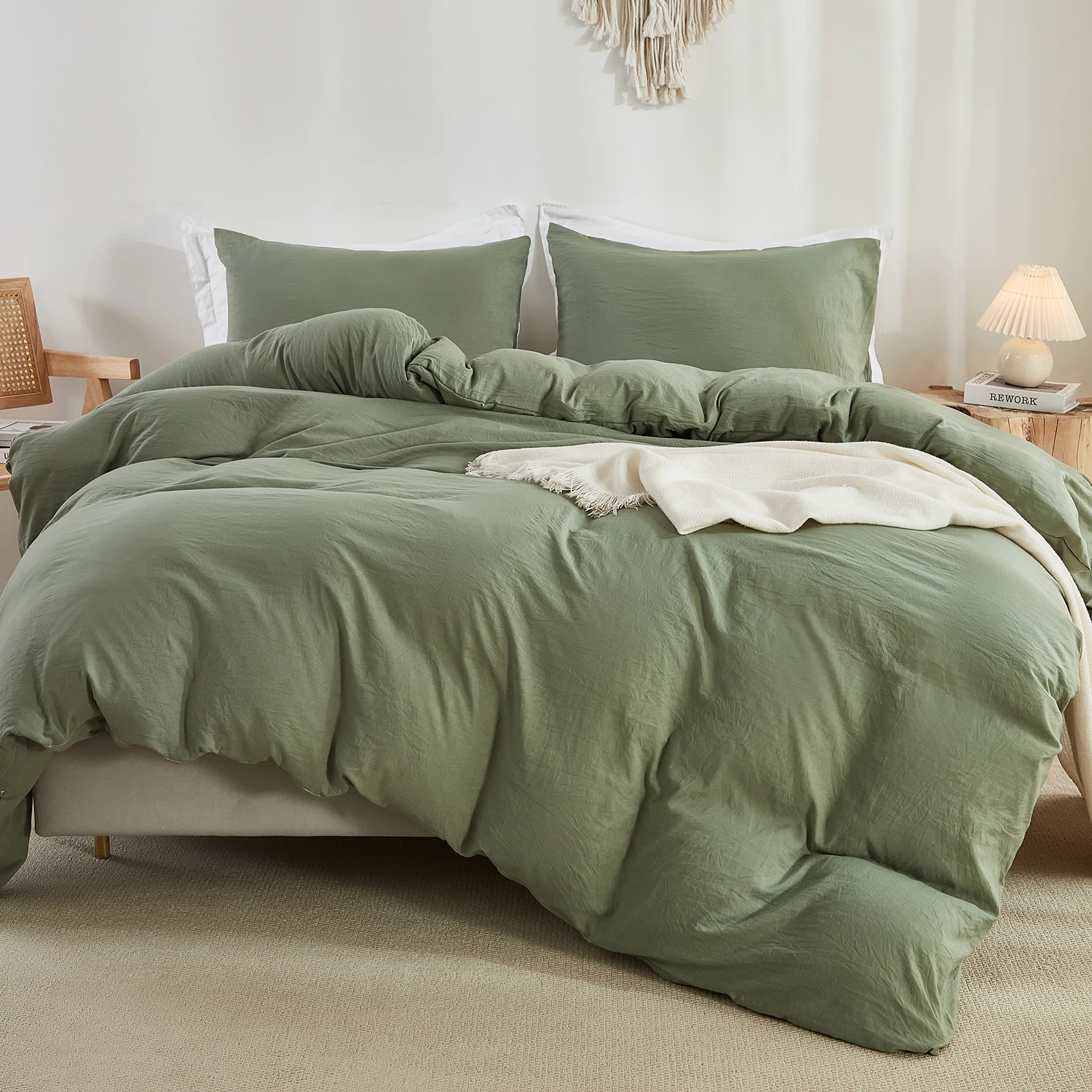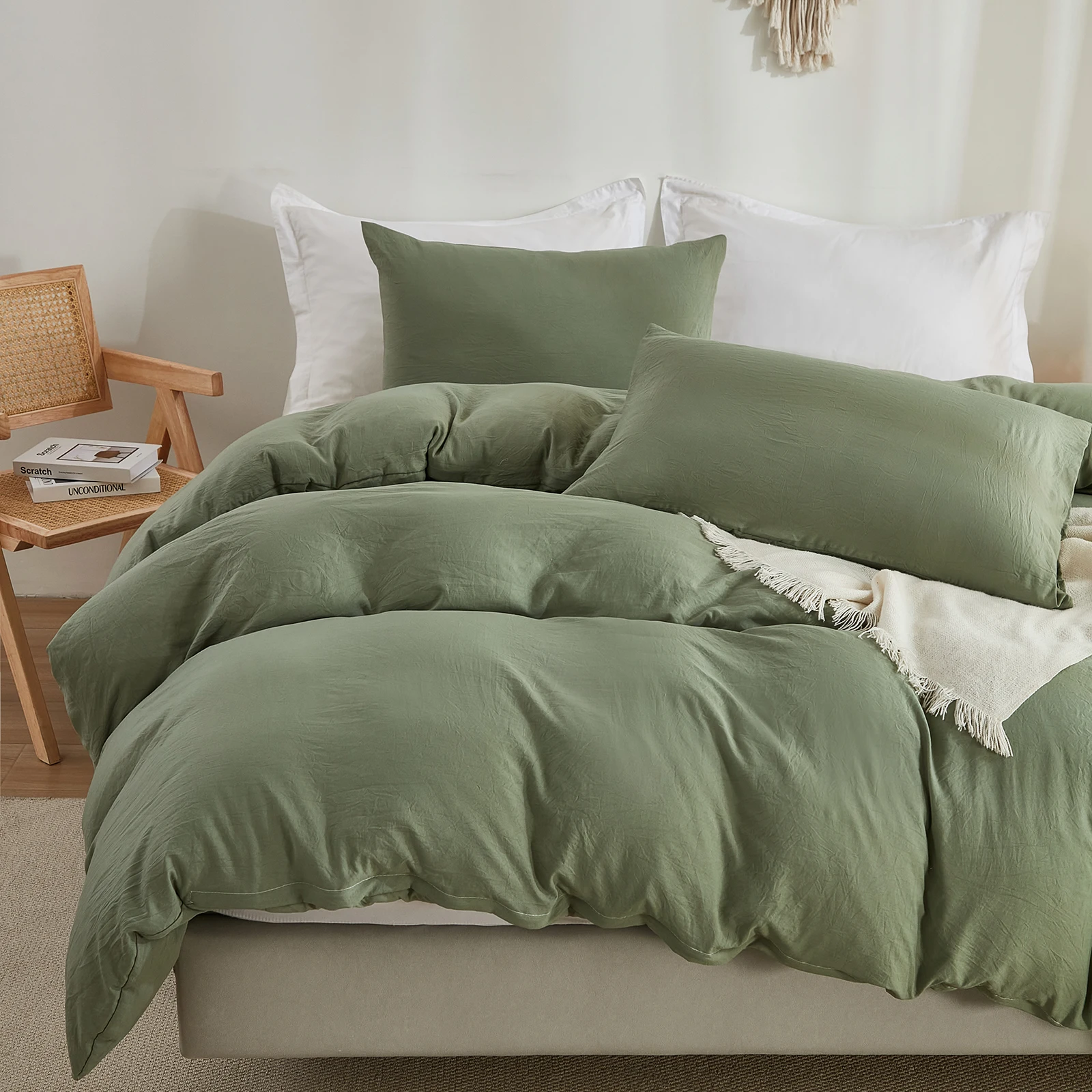 3PCS Green Duvet Cover Set Polyester Fibre Comforter Cover Terylene Bed Set Soft Lightweight Down Bedding Sets for All season