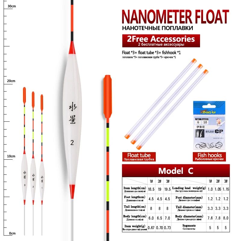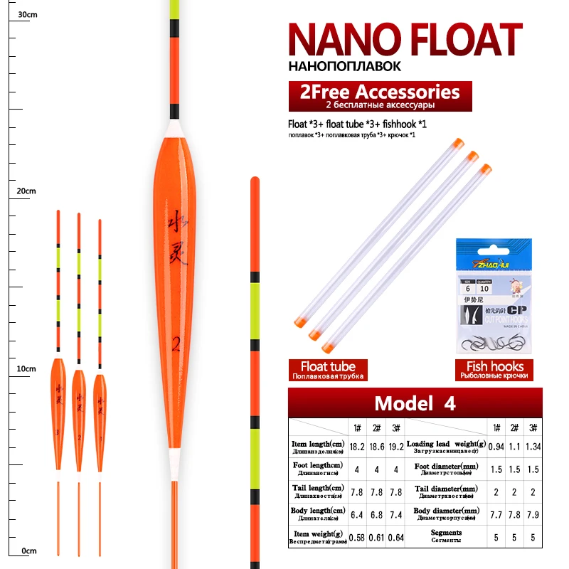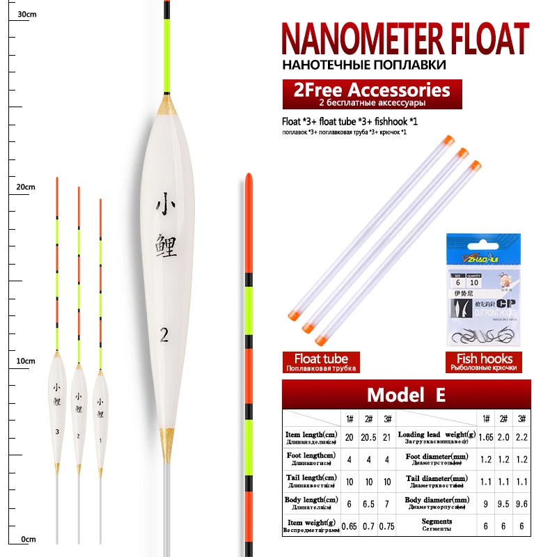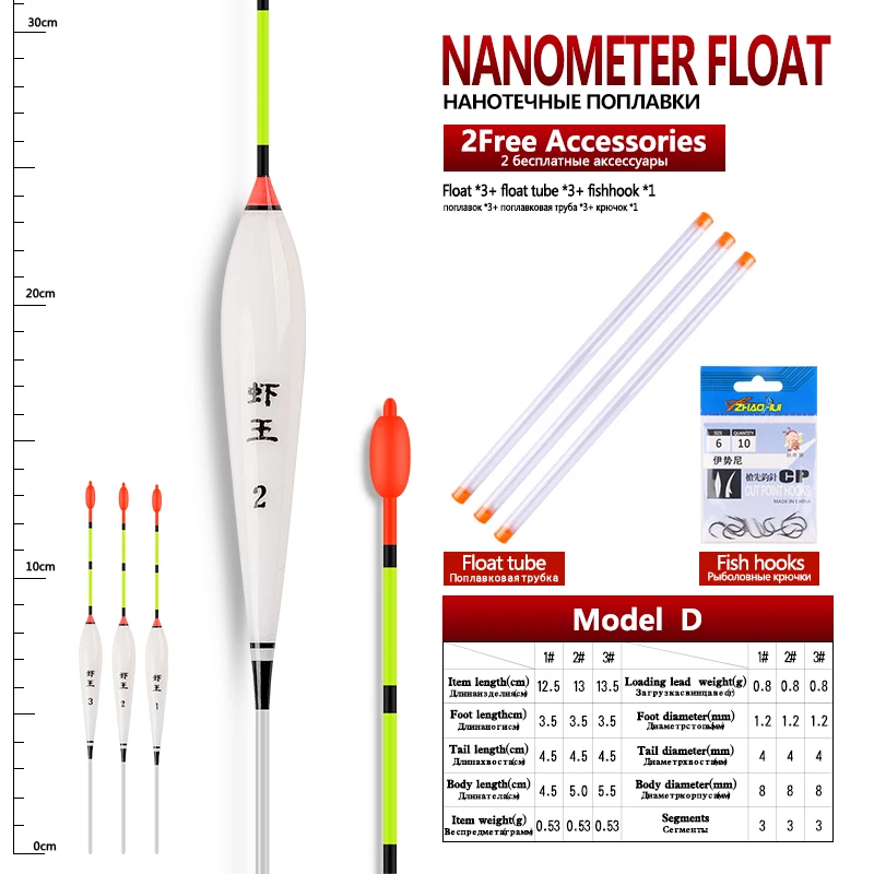 3pcs/lot Shallow Water Fishing Floats Nano Bobber+3pcs float tubes+1 Bag Fishing hooks Fresh Water Buoy Fishing Accessories