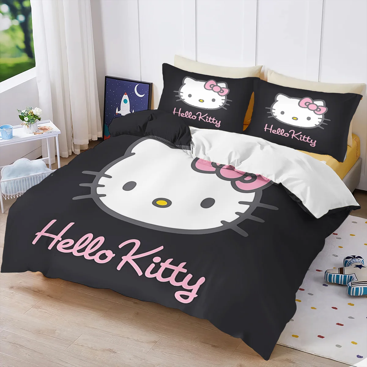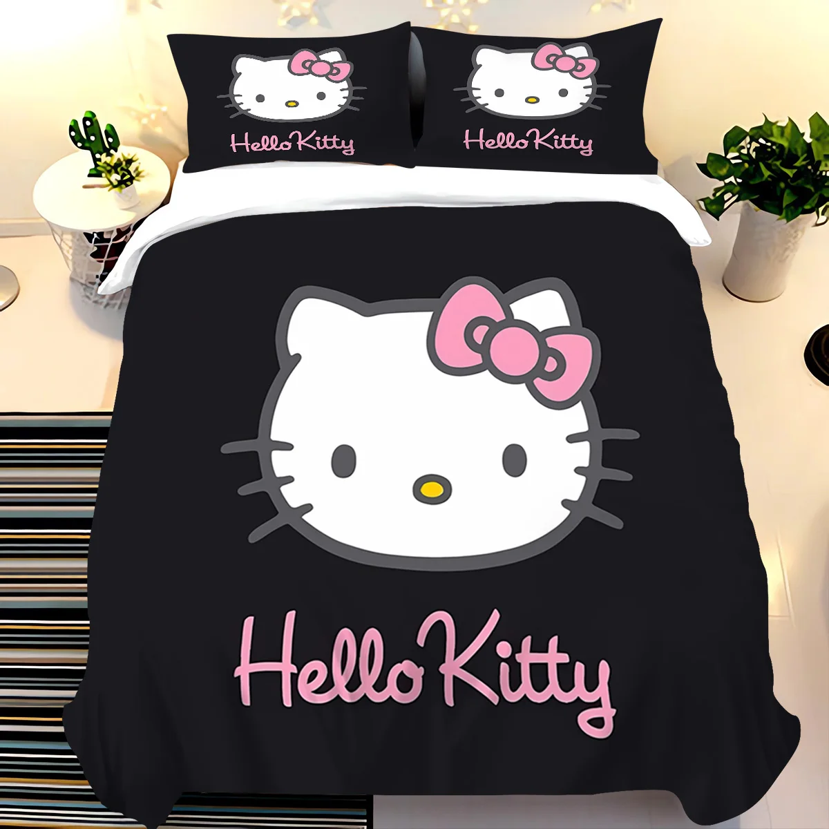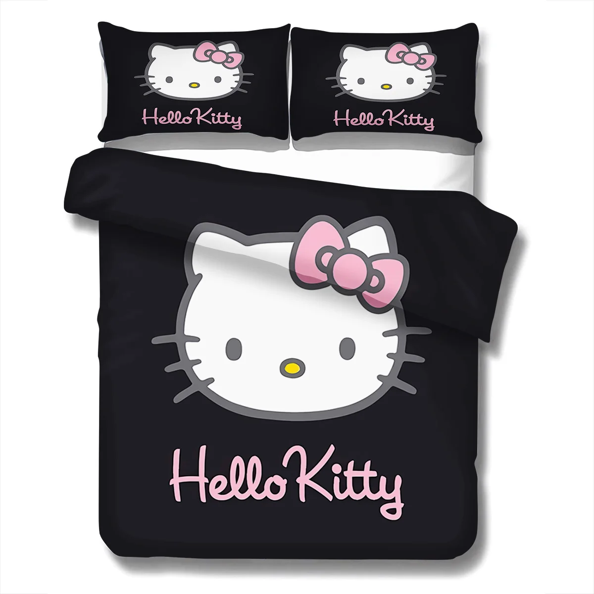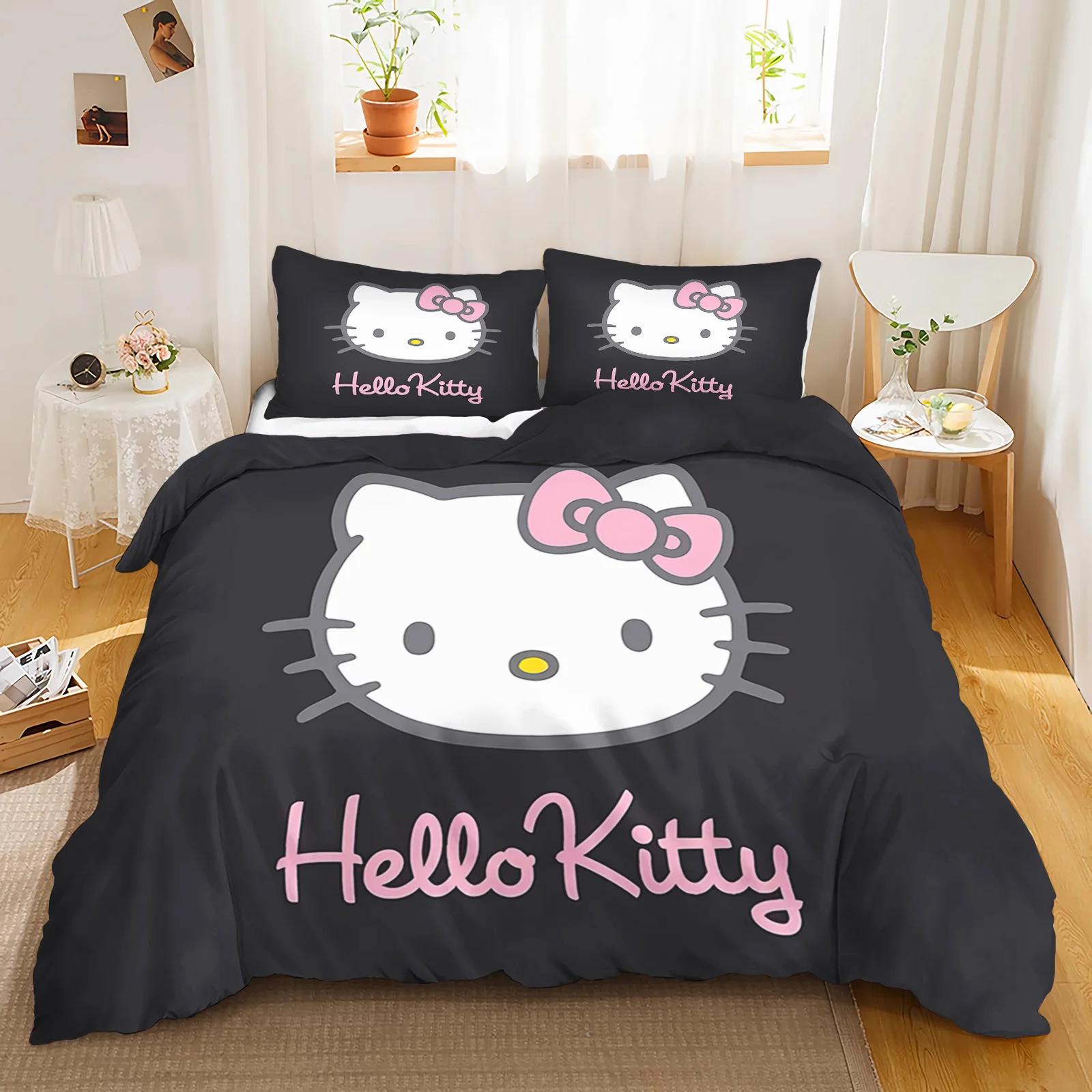 3PCS MINISO HelloKitty Duvet Cover Bedding Set Duvet Cover Cute Printed Cartoon Quilt Cover for Living Room Children Bedroom