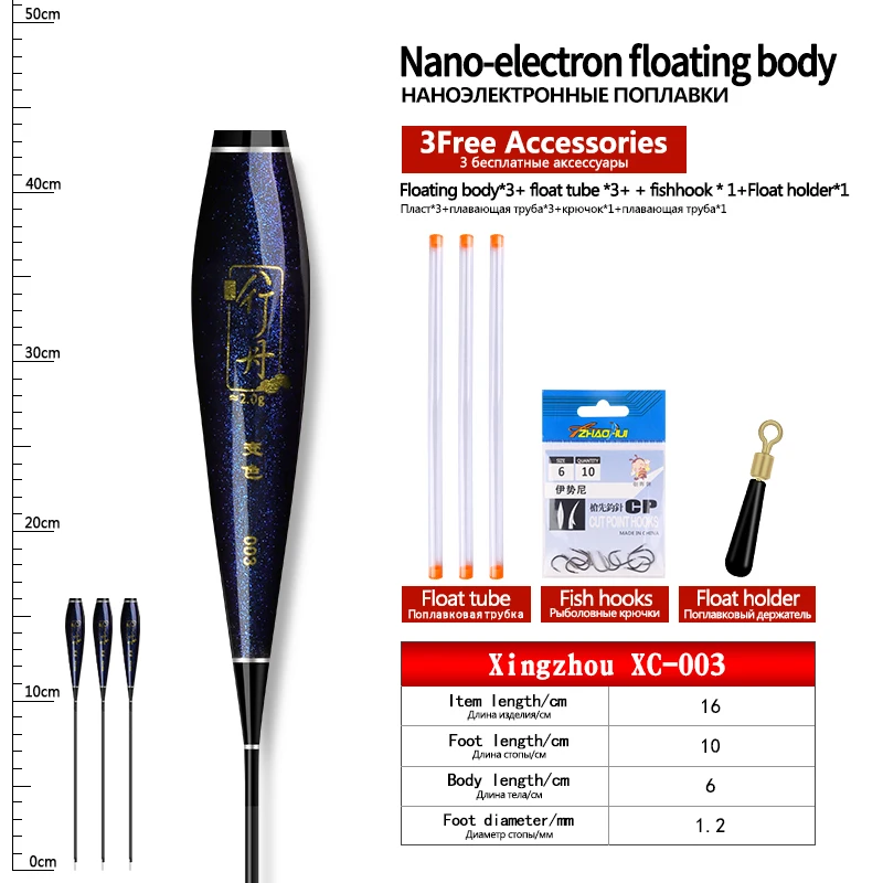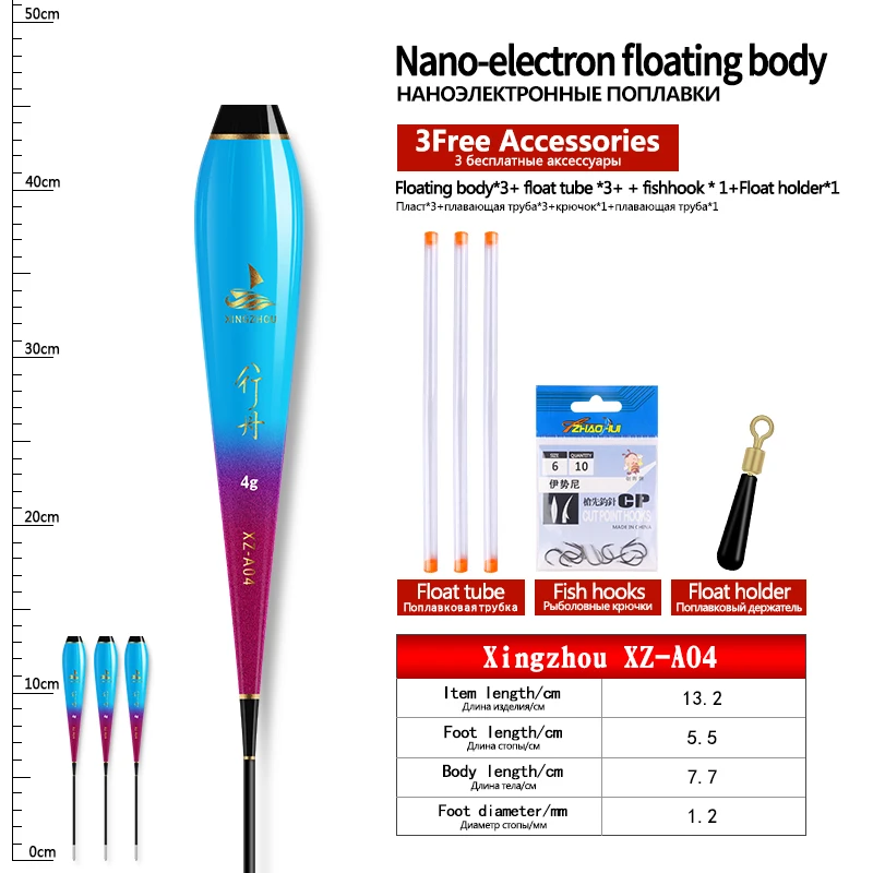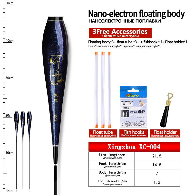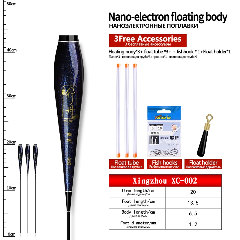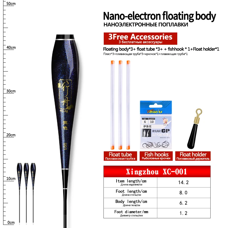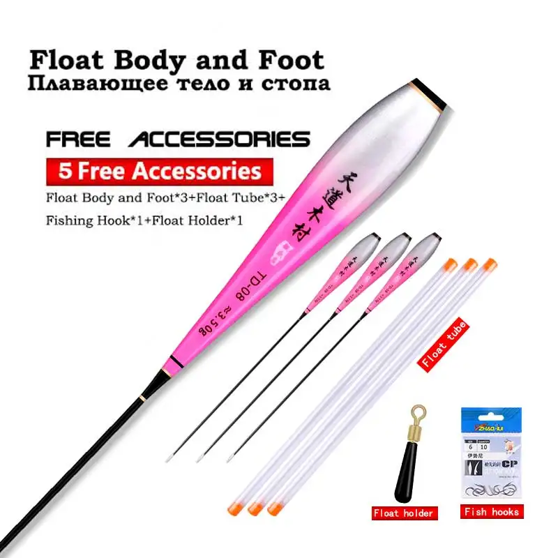 3PCS Nano Float Body Float Foot+3PCS Tubes+1 Bag Hooks+1 Float Holder Luminous Buoy Body No Tail No CR425 Battery Fishing Tools