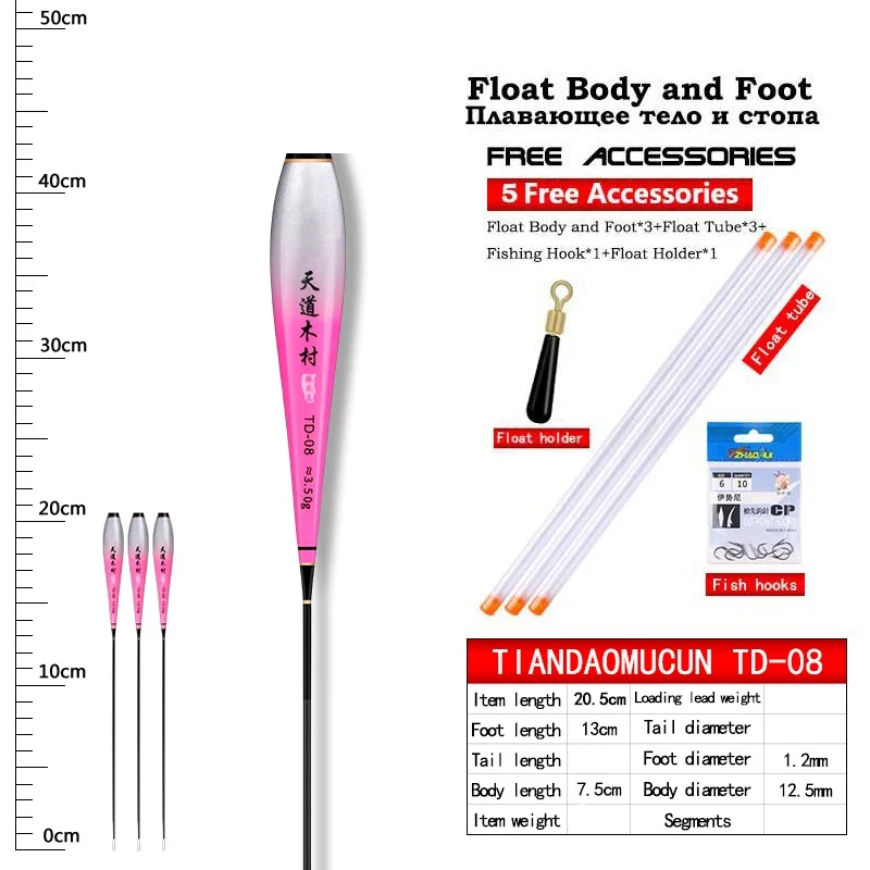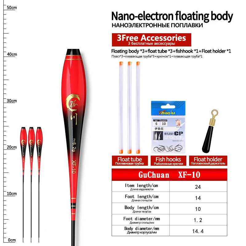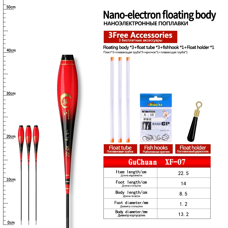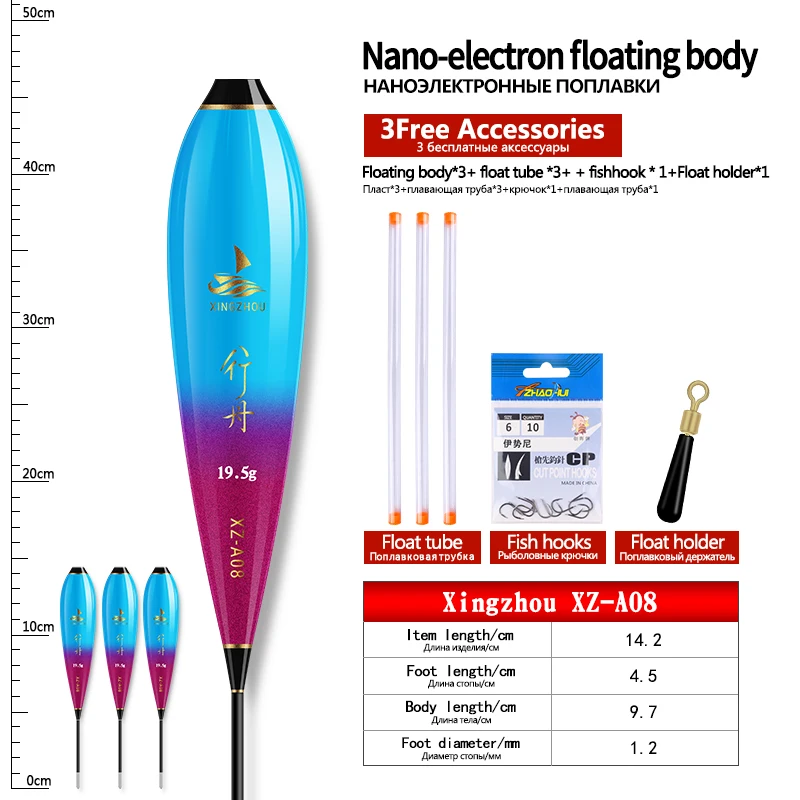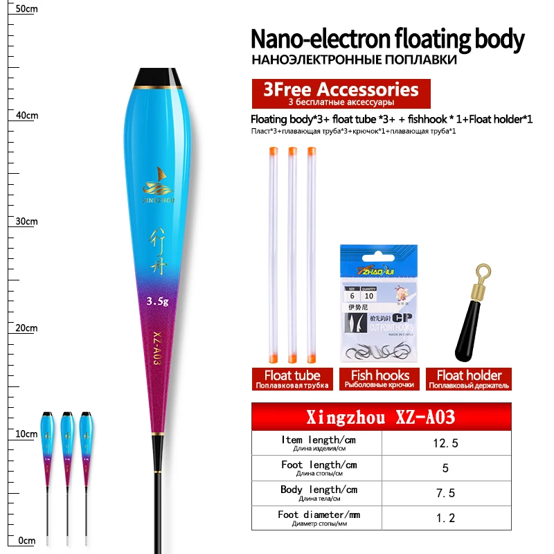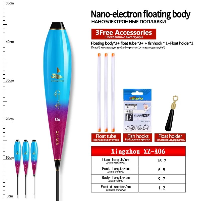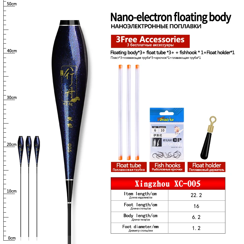 3PCS Nano Float Body Float Foot+3PCS Tubes+1 Bag Hooks+1 Float Holder Luminous Buoy Body No Tail No CR425 Battery Fishing Tools