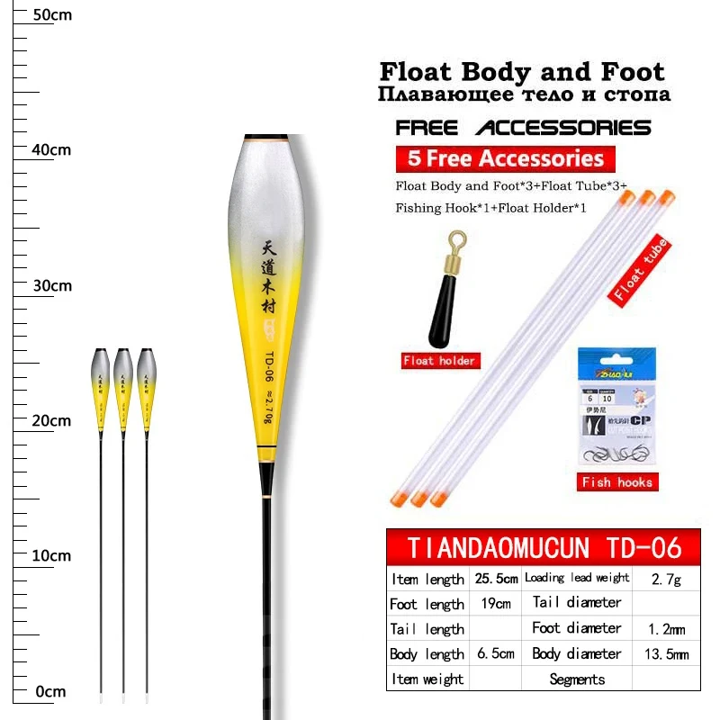 3 pieces float bodies+ 3 pieces float tubes+3 piece float holder+1 bag fishing hooks