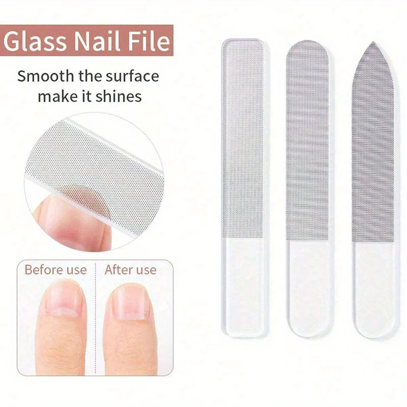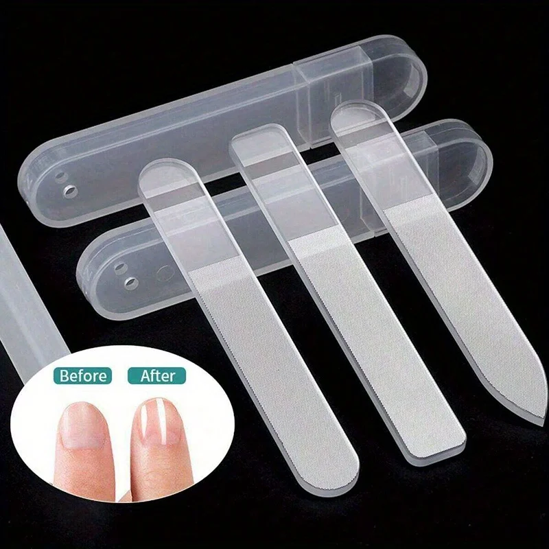 3Pcs Professional Nano Glass Nail Files strip Double-Sided Transparent crystal Polished Buffer with Case DIY Manicure Tools